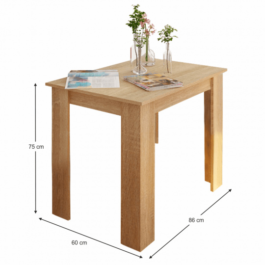 Jídelní stůl TARINIO Materiál: DTD laminovaná Provedení: dub sonoma Rozměry (ŠxHxV): 86x60x75 cm Tloušťka materiálu: 16 mm Dodávané v demontu