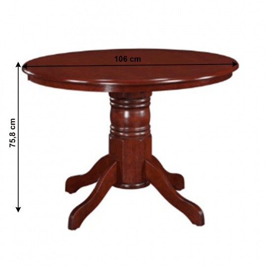 Materiál deska stolu: MDF / kaučukové dřevo Barva: kaštan Konstrukce nohy: kaučukové dřevo Barva: kaštan Rozměry (ŠxHxV): 106x106x75,8 cm Tloušťka desky: 1,8 cm Nosnost: 100 kg Praktický Kulatý Dodáván v demontu