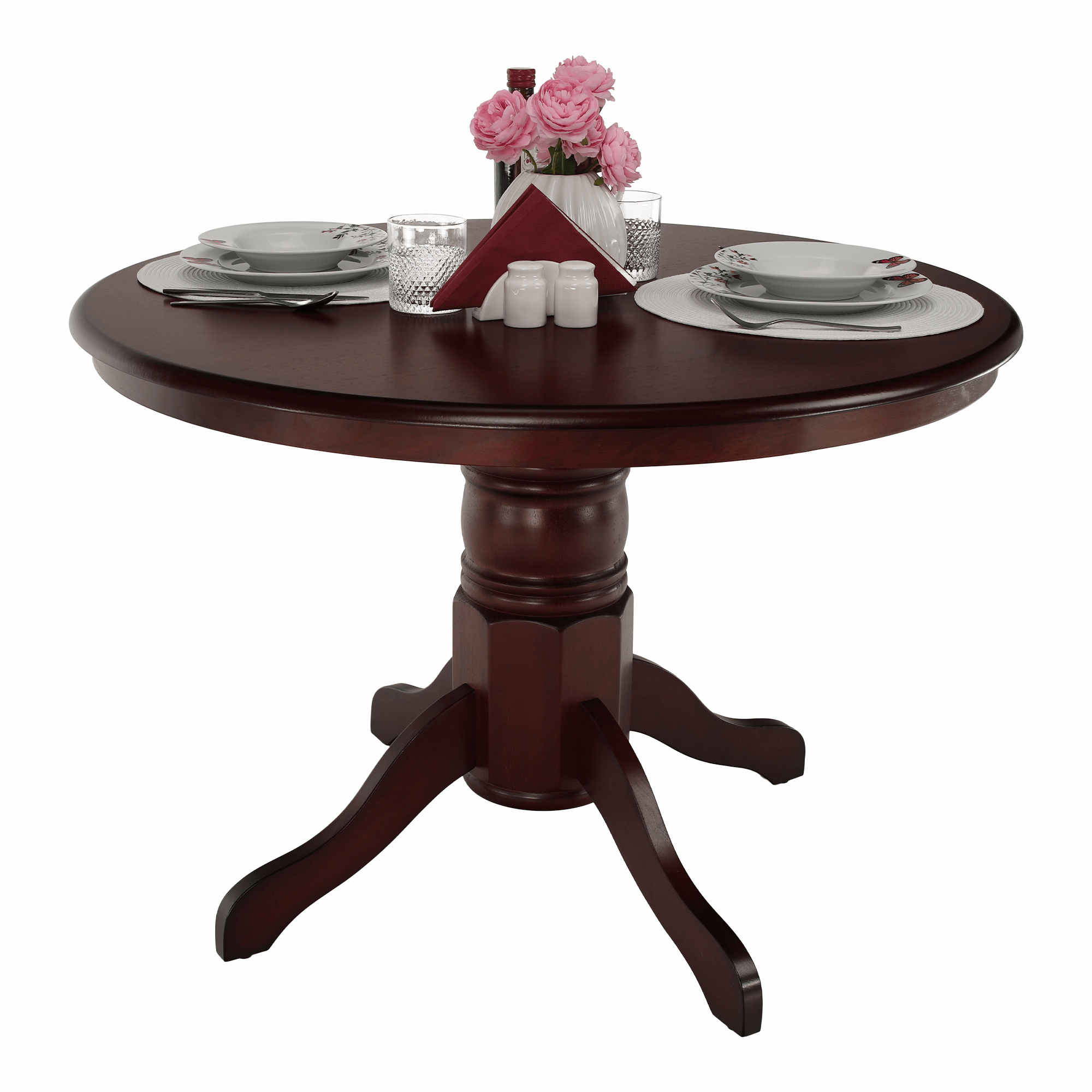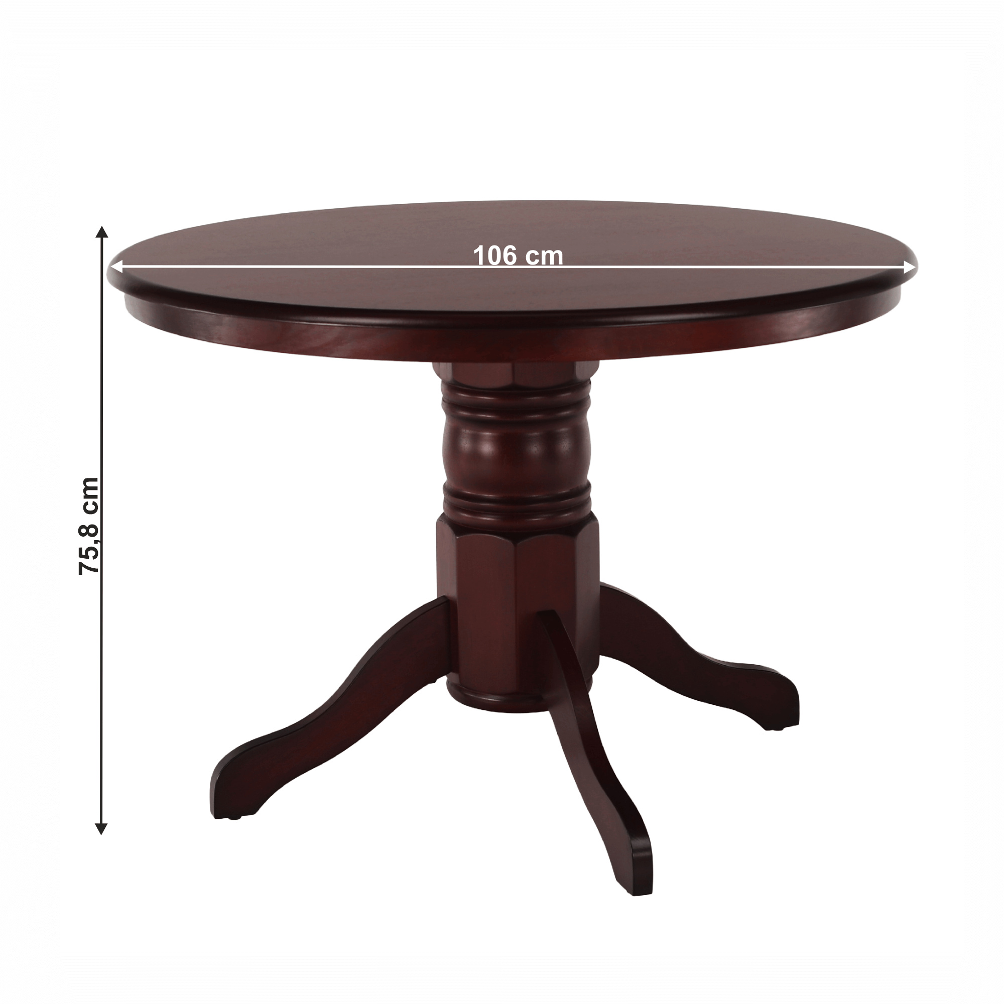 Materiál deska stolu: MDF / kaučukové dřevo Barva: kaštan Konstrukce nohy: kaučukové dřevo Barva: kaštan Rozměry (ŠxHxV): 106x106x75,8 cm Tloušťka desky: 1,8 cm Nosnost: 100 kg Praktický Kulatý Dodáván v demontu