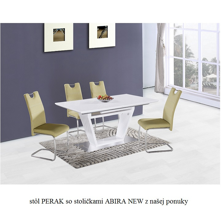 Jídelní stůl, rozkládací, bílá extra vysoký lesk / oceľ, 160-220x90 cm, PERAK