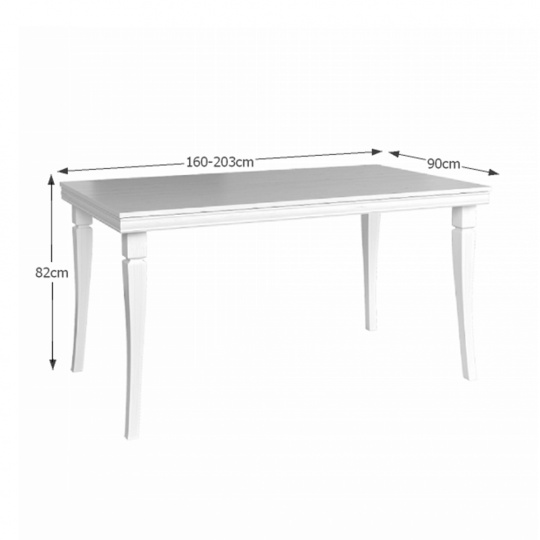Rozkládací jídelní stůl ST KORA. Barevné provedení sosna andersen. Materiál laminovaná DTD, MDF. Rozměry (ŠxHxV): 160-203x90x82 cm Tloušťka materiálu korpus: 22 mm Tloušťka materiálu vrchní desky: 36 mm
