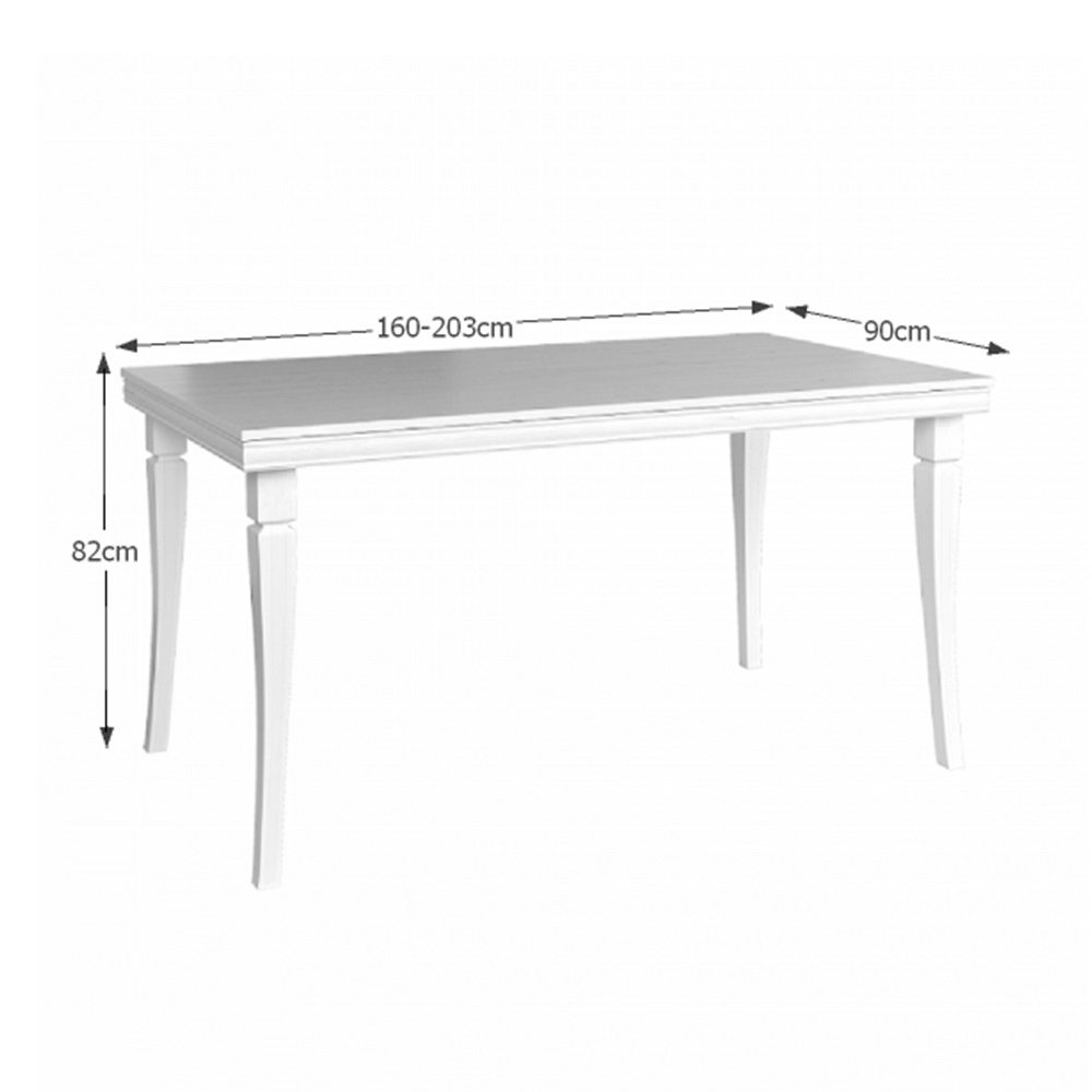 Rozkládací jídelní stůl ST KORA. Barevné provedení sosna andersen. Materiál laminovaná DTD, MDF. Rozměry (ŠxHxV): 160-203x90x82 cm Tloušťka materiálu korpus: 22 mm Tloušťka materiálu vrchní desky: 36 mm