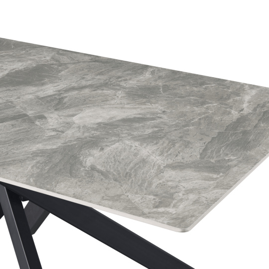 Materiál: keramika/kov Barva: světle šedý mramor/černá Rozměry (ŠxHxV): 160x90x75 cm Tloušťka materiálu: 1,2 cm Vhodný pro 6-8 osob Stabilní kovová podnož Kovové kluzáky Nosnost: 25 kg Dodáváno v demontu