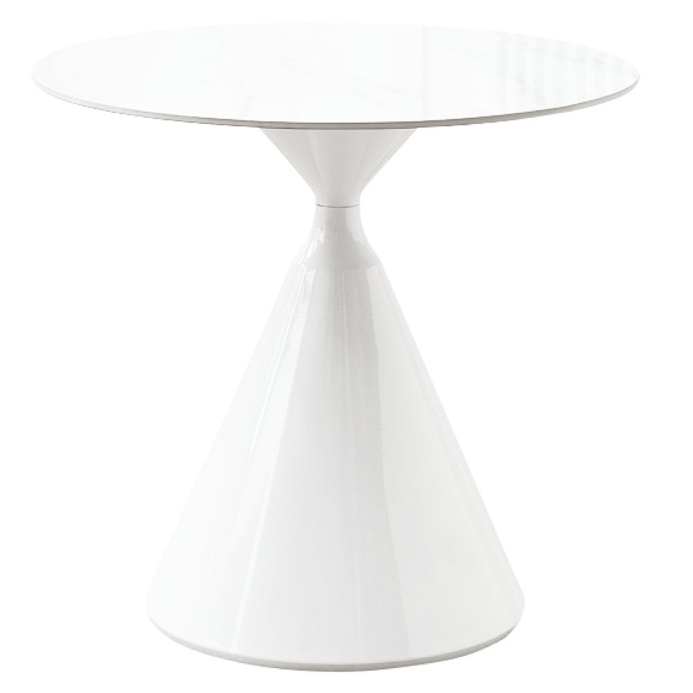 Jídelní stůl, světlý mramor/bílá, průměr 80 cm, VALER