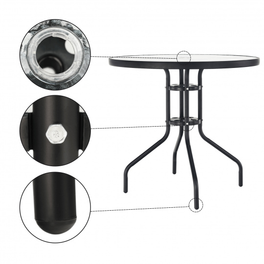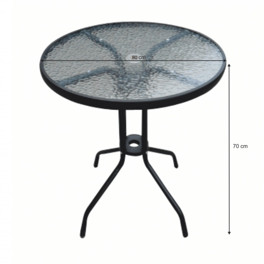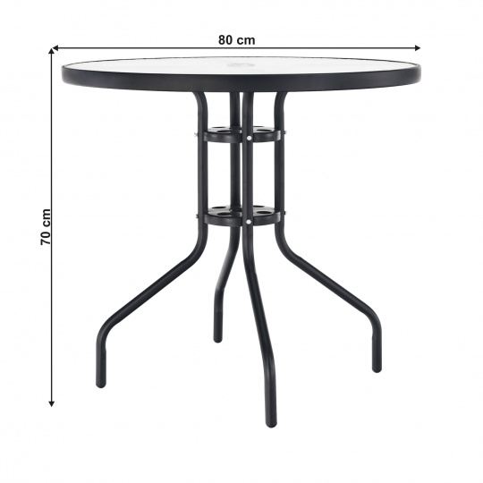 Materiál: ocel/tvrzené sklo Barva: černá Rozměry (ŠxHxV): 70x70x70 cm Tloušťka tvrzeného skla: 5 mm Nosnost: 20 kg Hmotnost: 8,5 kg Zahradní Praktický Moderní design Dodáváno v demonte Hmotnost: 9.5kg