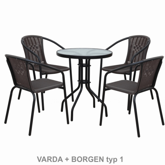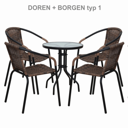 Židle stohovatelná. Barva: hnědá / černá Materiál: ratan / kov Rozměry (ŠxHxV): 53x63x72 cm Výška sedu: 42 cm Hloubka sedu: 40 cm Nosnost: 150 kg Hmotnost: 3kg