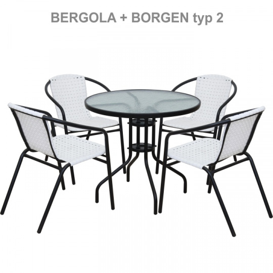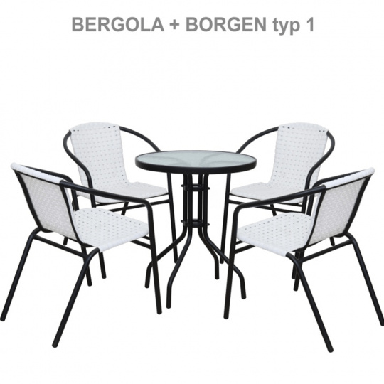 Zahradní set, bílá ocel/dub/světle šedá, PELOR