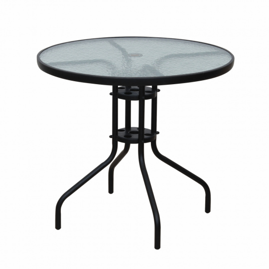 Zahradní stolek, černá ocel/tvrzené sklo, SELKO