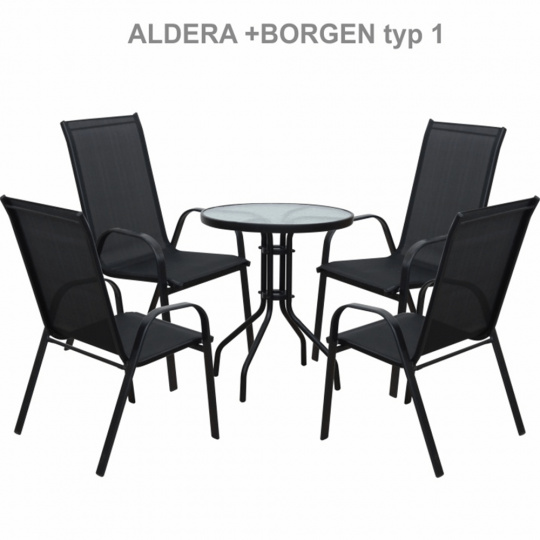 Zahradní stůl, černá ocel/tvrzené sklo, FRENY