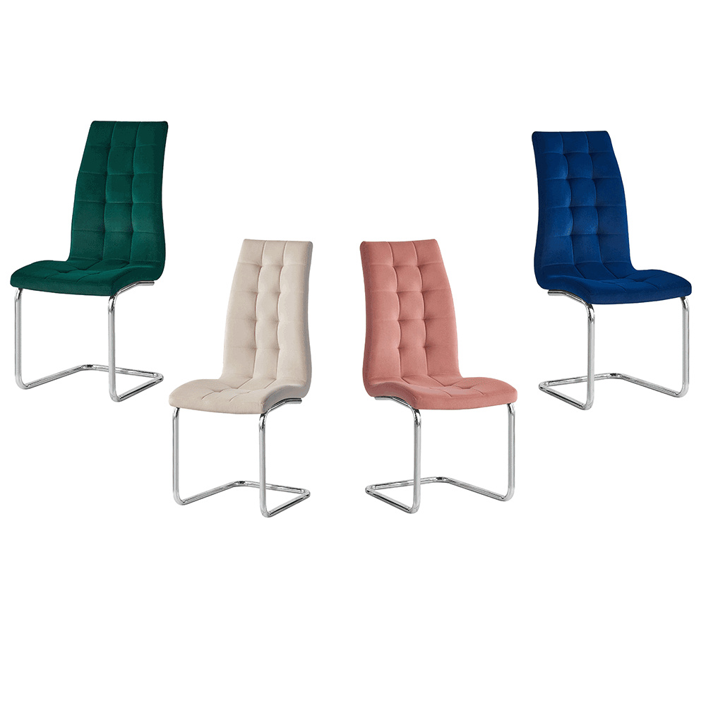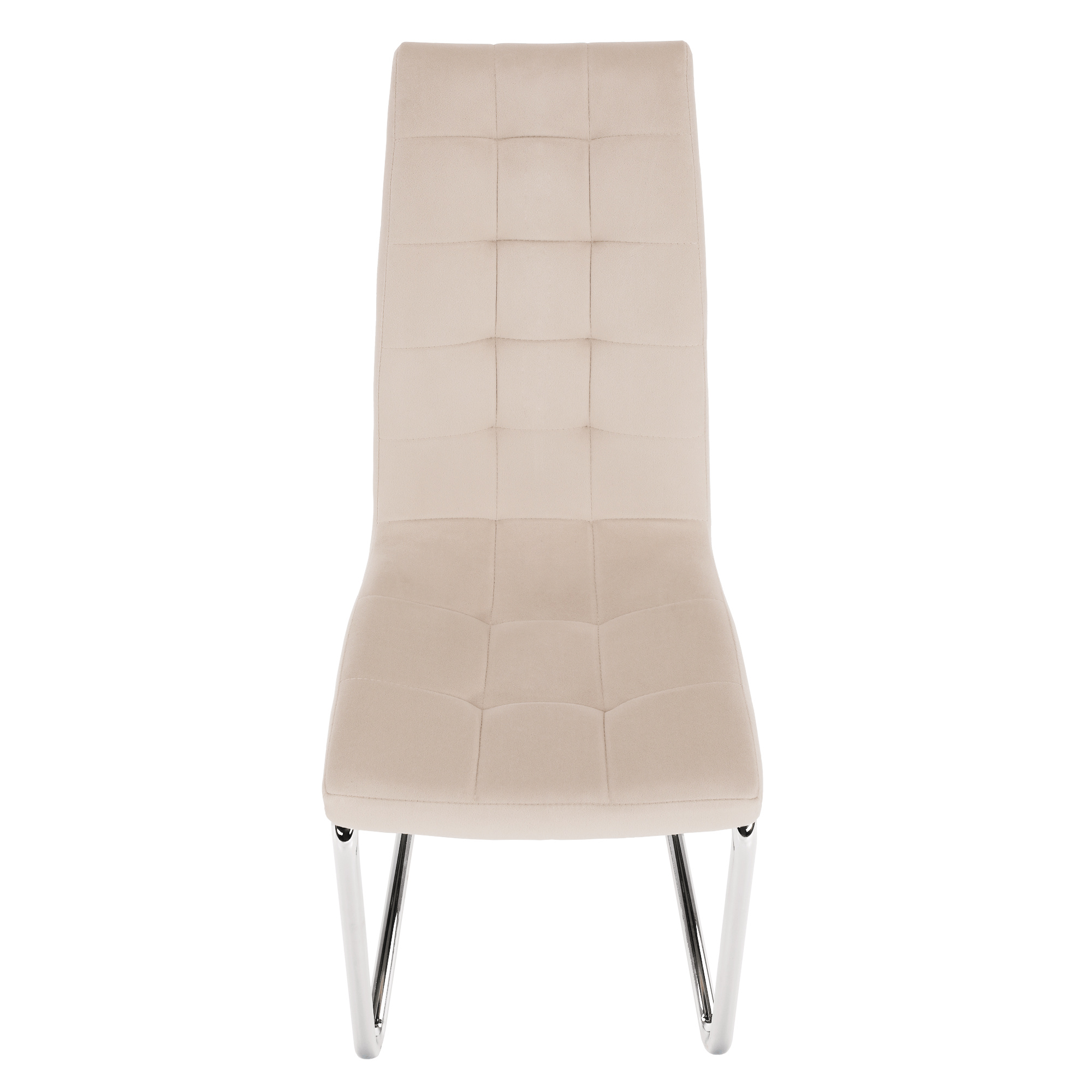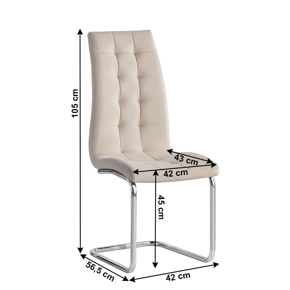 Jídelní židle Materiál: velvet látka v barevném provedení béžová Dulux./ chrom Rozměry (ŠxHxV): 42x56,5x105 cm Oděruodolnost textilie podle testu Martindale: 85 000 oděrek Hloubka sezení: 43 cm Výška sezení: 45 cm Šířka sezení: 42 cm Nosnost: 110 kg