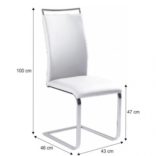 Jídelní židle BARNA NEW. Materiál: ekokůže / chrom Oděruodolnost textilie podle testu Martindale: 100 000 oděrek Barva: bílá Rozměry (ŠxHxV): 43x46x100 cm Hmotnost: 6,5 kg Nosnost: 90 kg Dodávané v demontu.