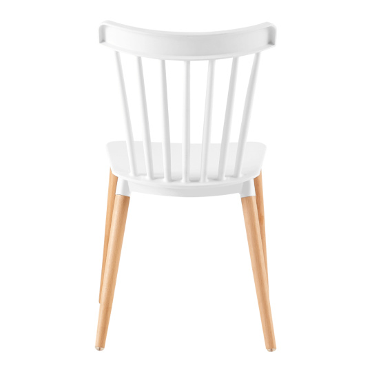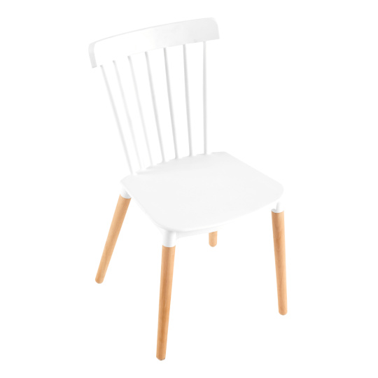 Materiál: plast/masivní bukové dřevo Barva: bílá/buk Rozměry (ŠxHxV): 54x44x83 cm Výška sedu: 45 cm Hloubka sedu: 40 cm Šířka zádové opěrky: 44 cm Výška zádové opěrky: 42 cm Nosnost: 100 kg Dodáváno v demontu