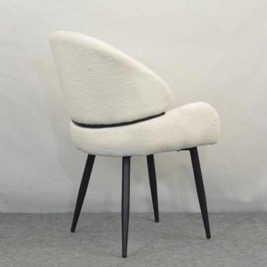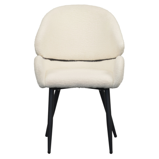 Materiál: látka Bouclé/kov Oděruodolnost textilie podle testu Martindale: 45 000 oděrů Barva: bílá/černá Rozměry (ŠxHxV): 53,5x59x86 cm Výška sedu: 49 cm Hloubka sedu: 46 cm Šířka sedu: 53,5 cm Výška zádové opěrky: 43cm Šířka zádové opěrky: 45 cm Nosnost: 100 kg Kovová konstrukce Designové Dodáváno v demontu