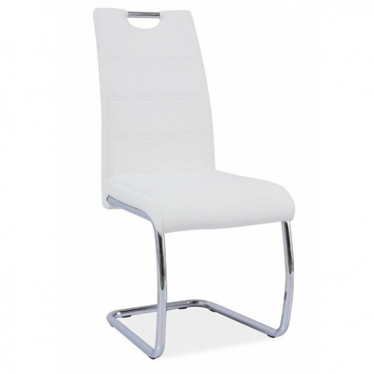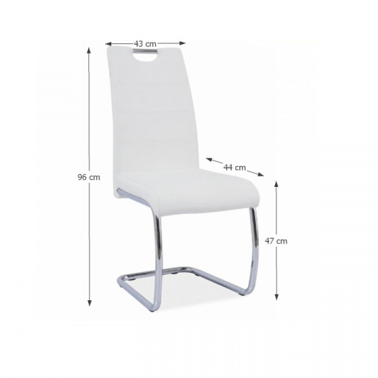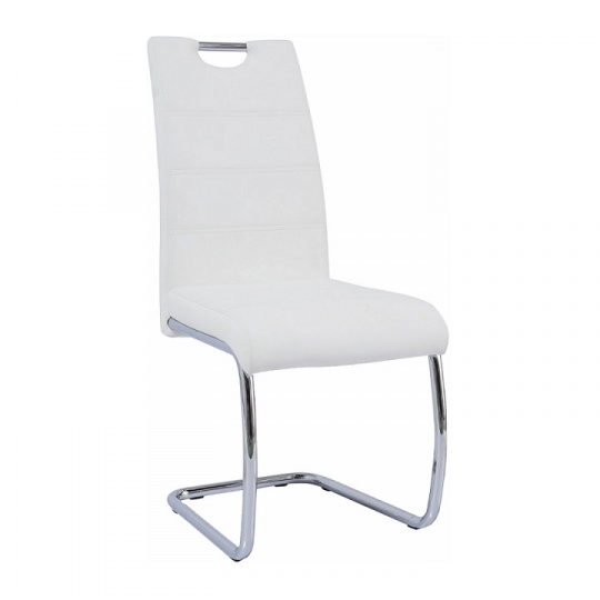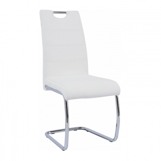 jídelní židle, materiál: ekokůže + chrom, barevné provedení: bílá. Rozměry ŠxHxV: 40x58x103 cm, výška sedu: 48 cm. Nosnost: 110 kg Dodáváno v demontu. Hmotnost: 8.5kg