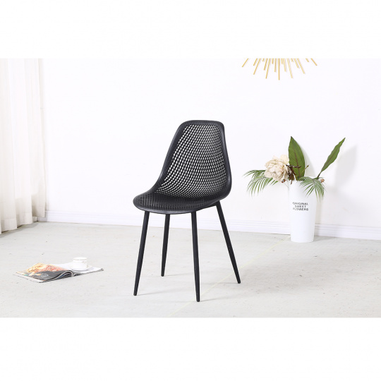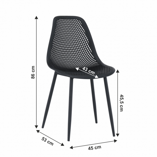 Jídelní židle TEGRA TYP 2 Materiál: plast / kov Barva: černá / černá Rozměry (ŠxHxV): 37x53x86 cm Výška sedu: 45 cm Hloubka sedu: 40 cm Šírka sedenia: 46.5 cm Nosnost: 90 kg Vhodná i do exteriéru. Dodávané v demontu.