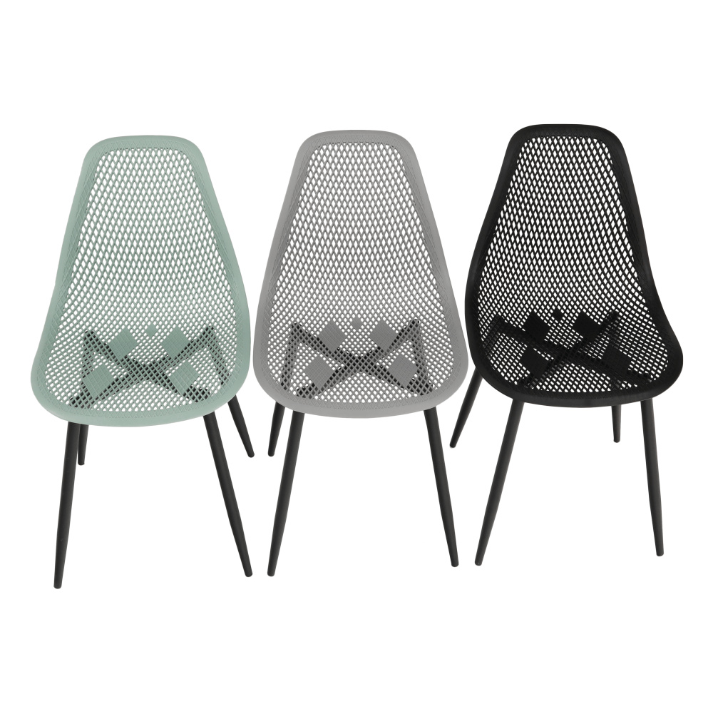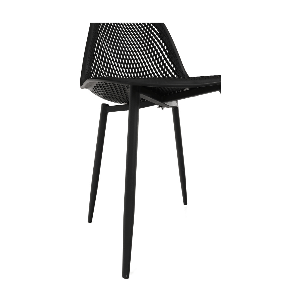 Jídelní židle TEGRA TYP 2 Materiál: plast / kov Barva: černá / černá Rozměry (ŠxHxV): 37x53x86 cm Výška sedu: 45 cm Hloubka sedu: 40 cm Šírka sedenia: 46.5 cm Nosnost: 90 kg Vhodná i do exteriéru. Dodávané v demontu.