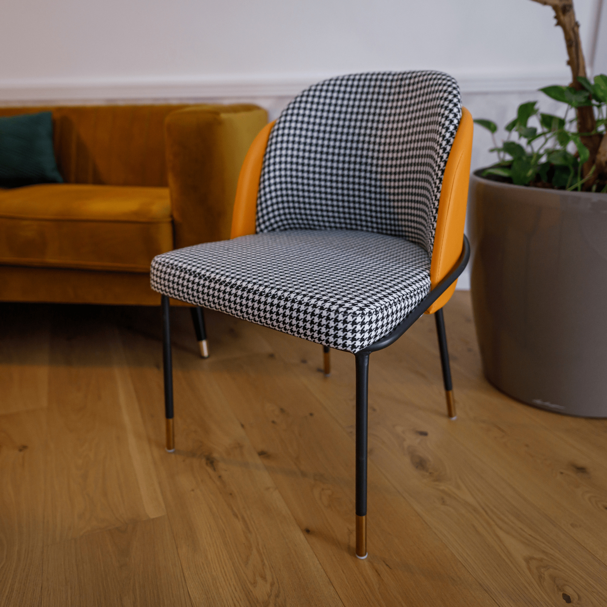 Materiál: látka / ekokůže / kov Oděruodolnost textilie podle testu Martindale: 80 000 oděrek Oděruodolnost ekokůže podle testu Martindale: 100 000 oděrek Barva látky: černobílá vzor Pepito Barva ekokůže: camel Barva konstrukce: černá Rozměry (ŠxHxV): 54x56x78 cm Výška sedu: 47 cm Hloubka sedu: 47 cm Výška zádové opěrky: 38 cm Šířka zádové opěrky vnitřní: 40 cm Šířka zádové opěrky vnější: 54 cm Nosnost: 95 kg Exkluzivní provedení látky a ekokůže atraktivní design moderní barvy Dodávané v demontu Viz celou nabídku našich jídelních židlí.