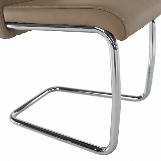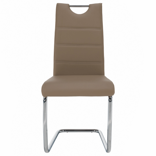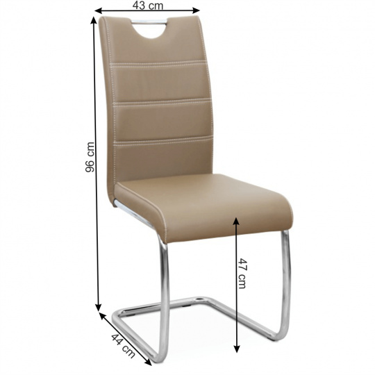 Jídelní židle. Materiál: ekokůže / chrom Barva: capuccino Rozměry (ŠxHxD): 43x44x96 cm Nosnost: 110 kg Dodávané v demontu.