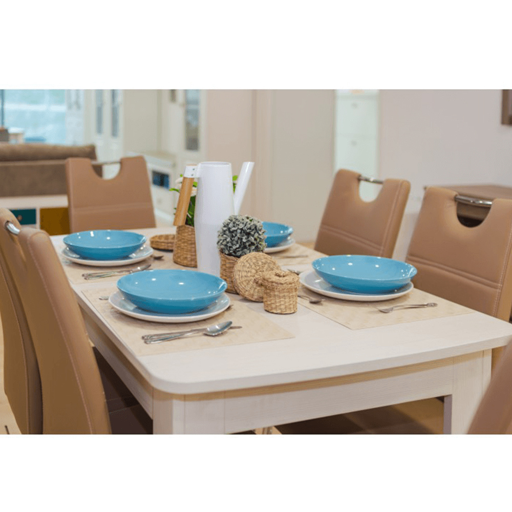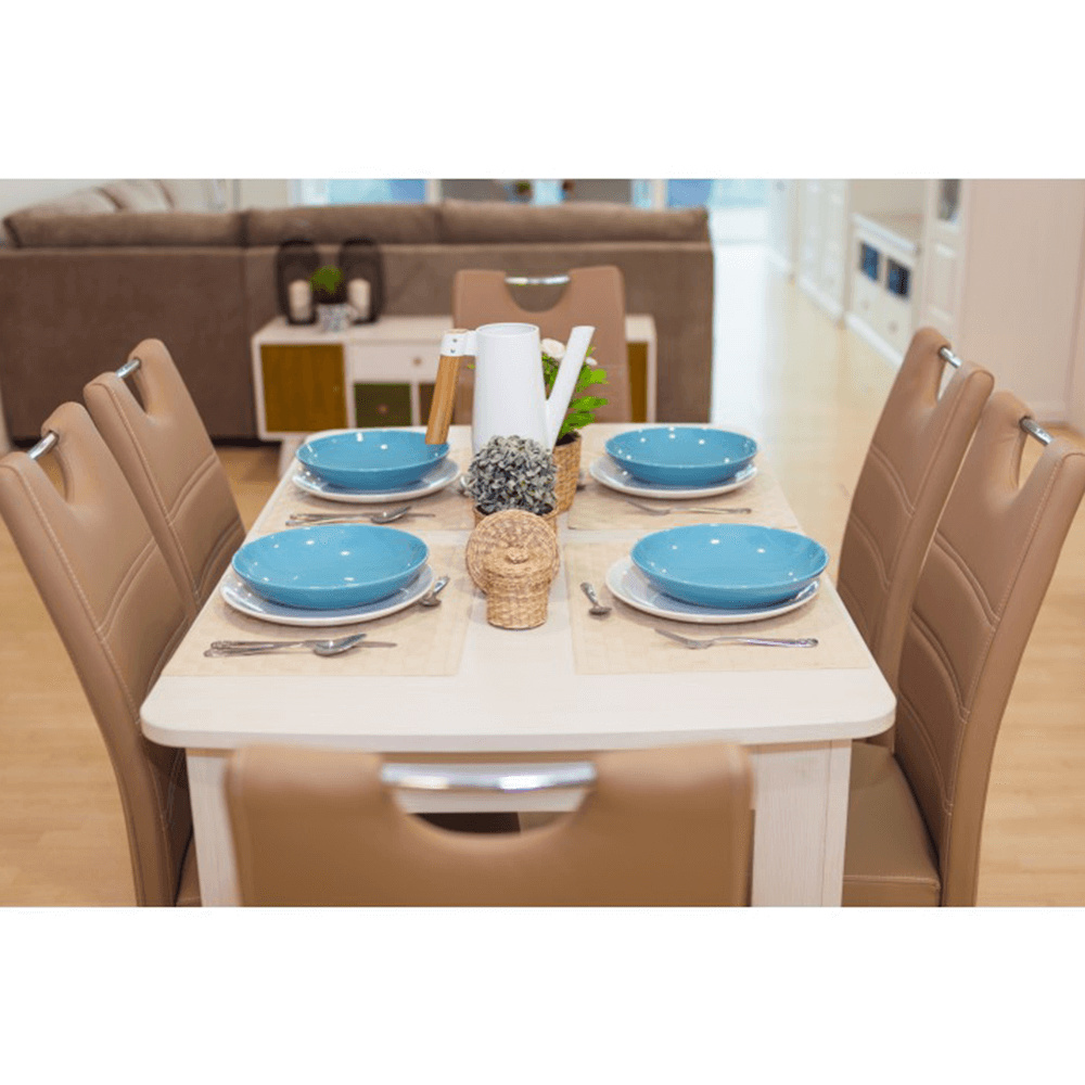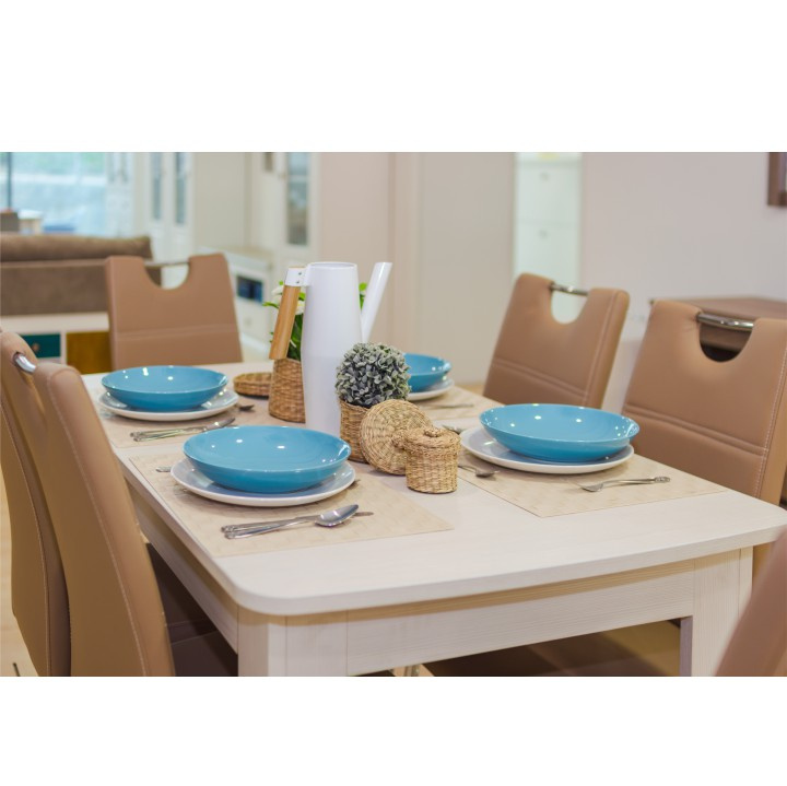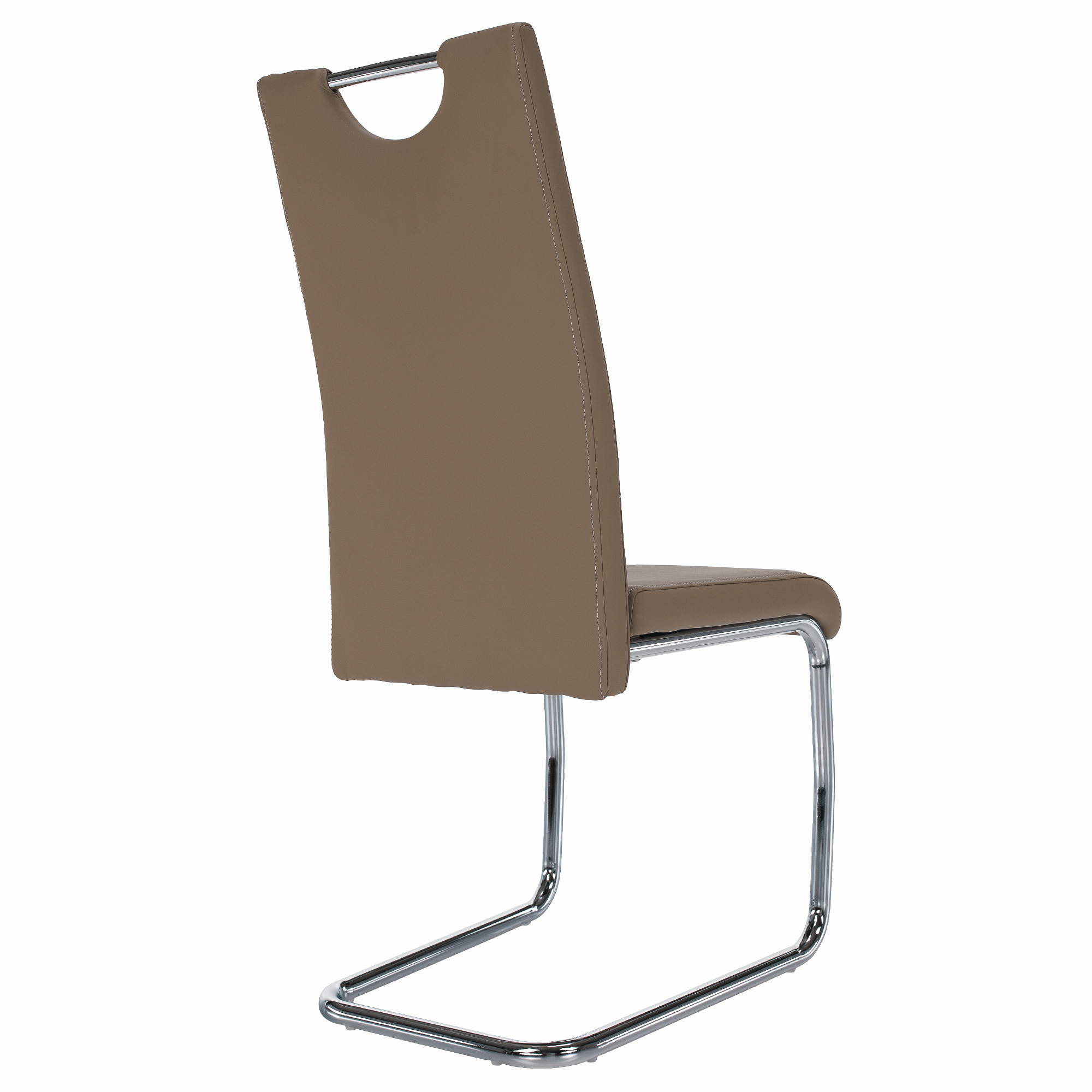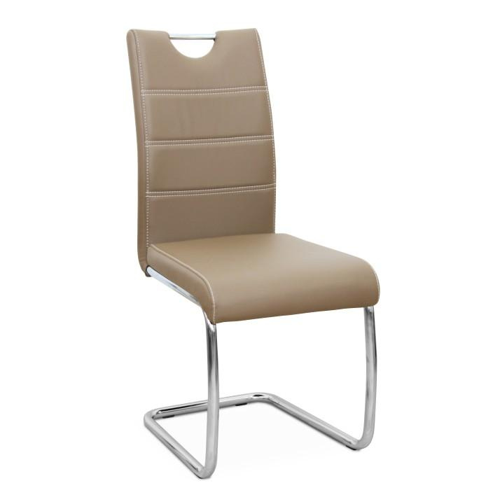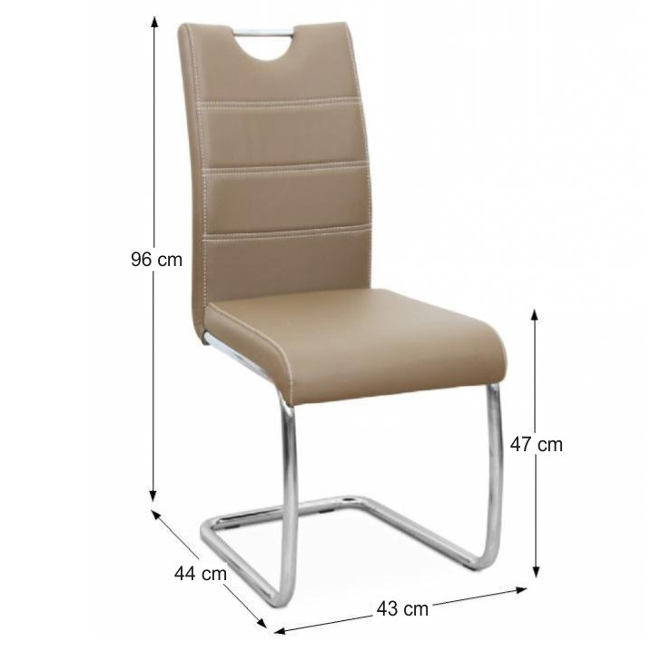 Jídelní židle. Materiál: ekokůže / chrom Barva: capuccino Rozměry (ŠxHxD): 43x44x96 cm Nosnost: 110 kg Dodávané v demontu.