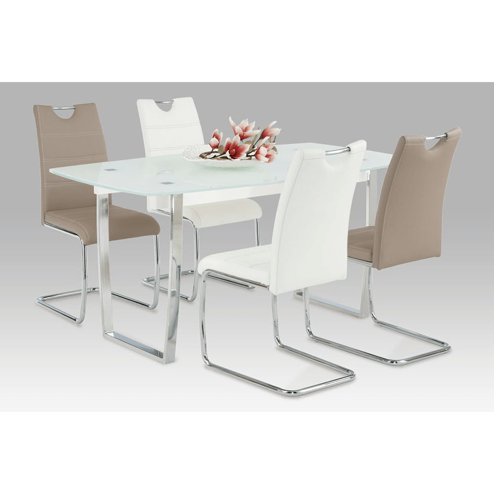 Jídelní židle, ekokůže cappucino, světlé šití / chrom,ABIRA NEW