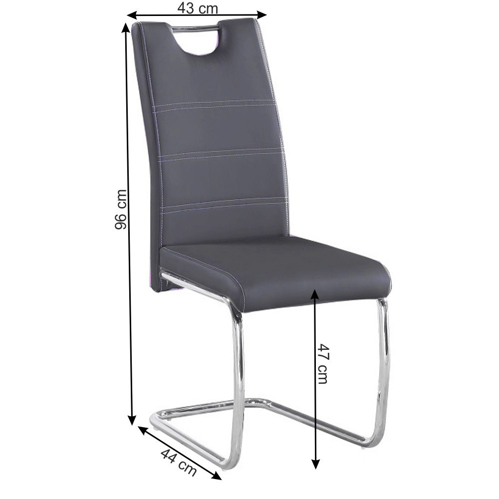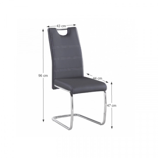 Jídelní židle, Materiál: ekokůže / chrom Oděruodolnost textilie podle testu Martindale: 100 000 oděrek Barva: tmavě šedá Rozměry (ŠxHxV): 44x56,5x98,5 cm, Výška sedu: 47 cm. Dodávané v demontu. Nosnost: 110 kg