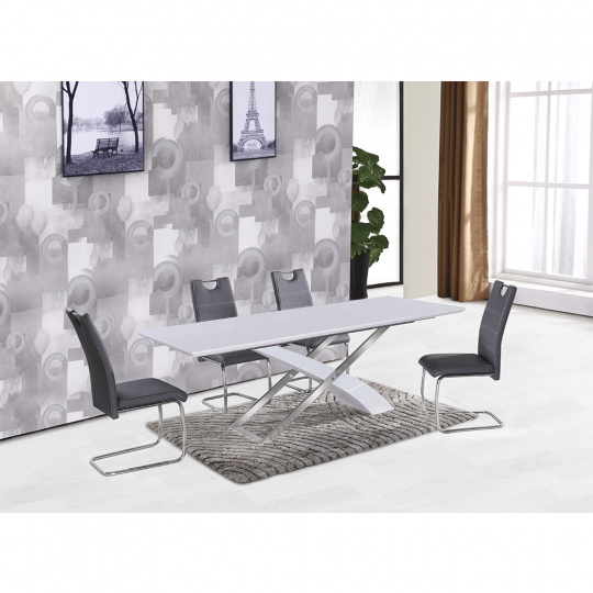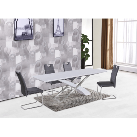 Jídelní židle, ekokůže tmavě šedá, světlé šití / chrom, ABIRA NEW