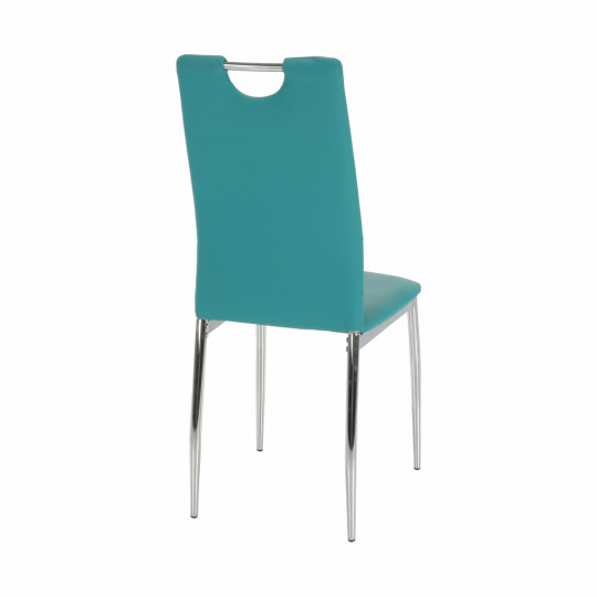 Jídelní židle, Materiál: chrom + ekokůže, Oděruodolnost ekokůže podle testu Martindale: 100 000 oděrek Barevné provedení petrolejová Rozměry ŠxHxV: 44x41x97 cm, Výška sezení: 45,5 cm Nosnost: 110 kg