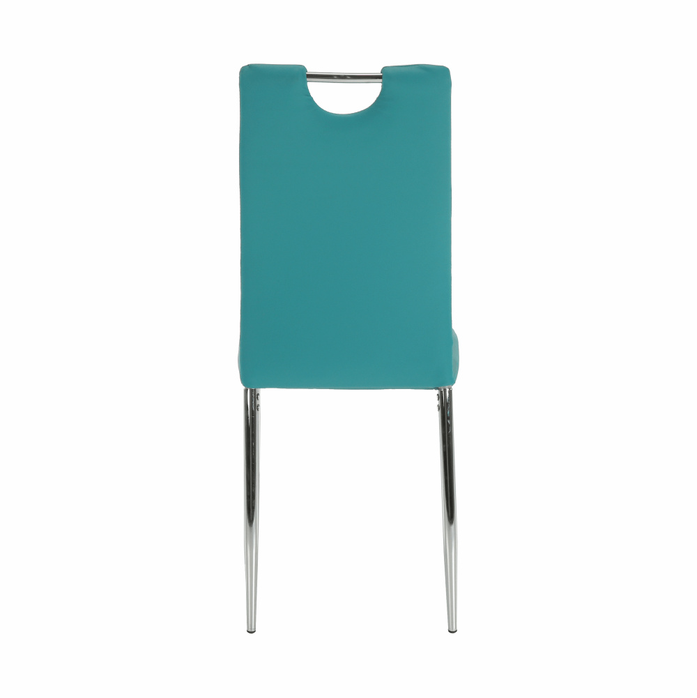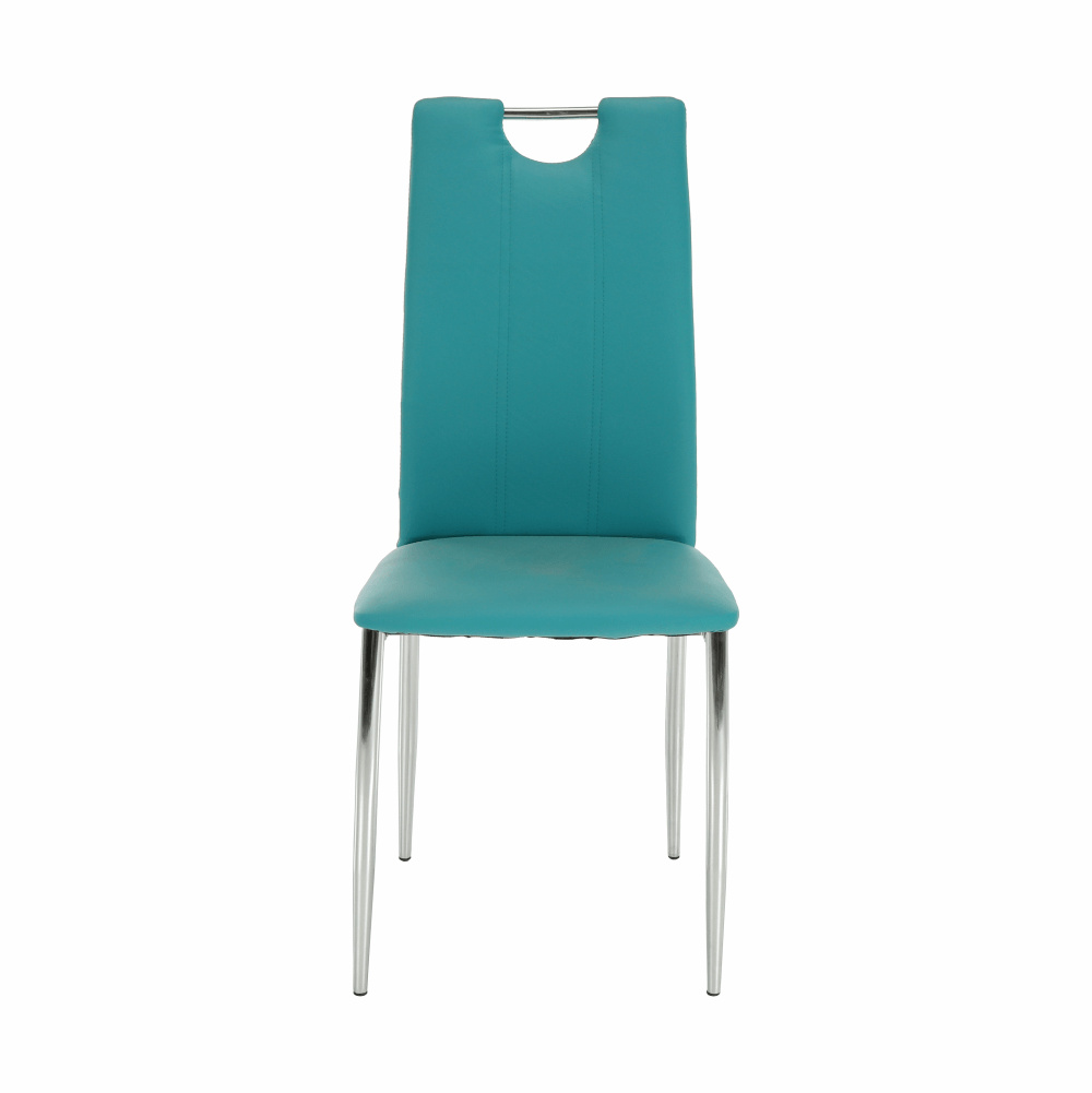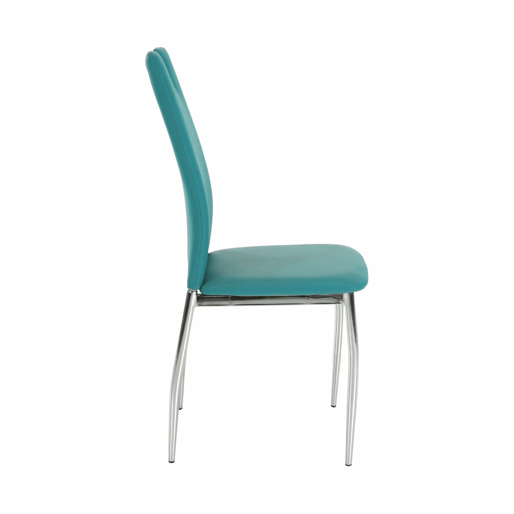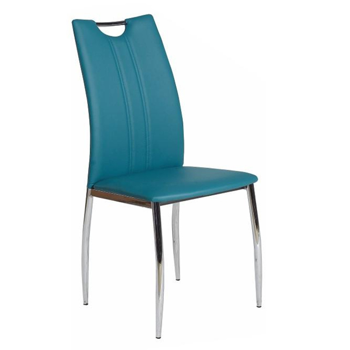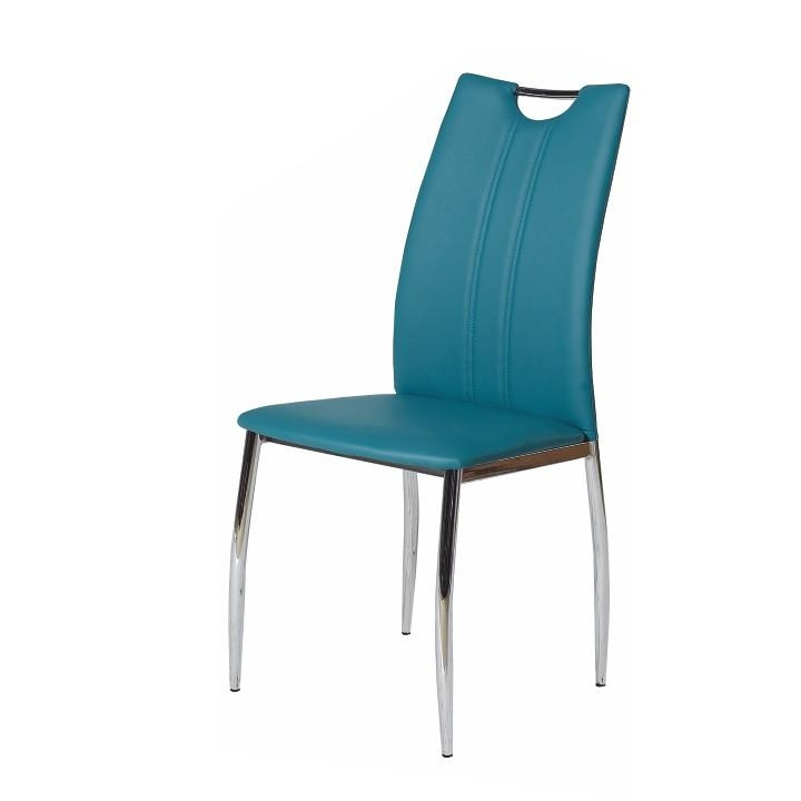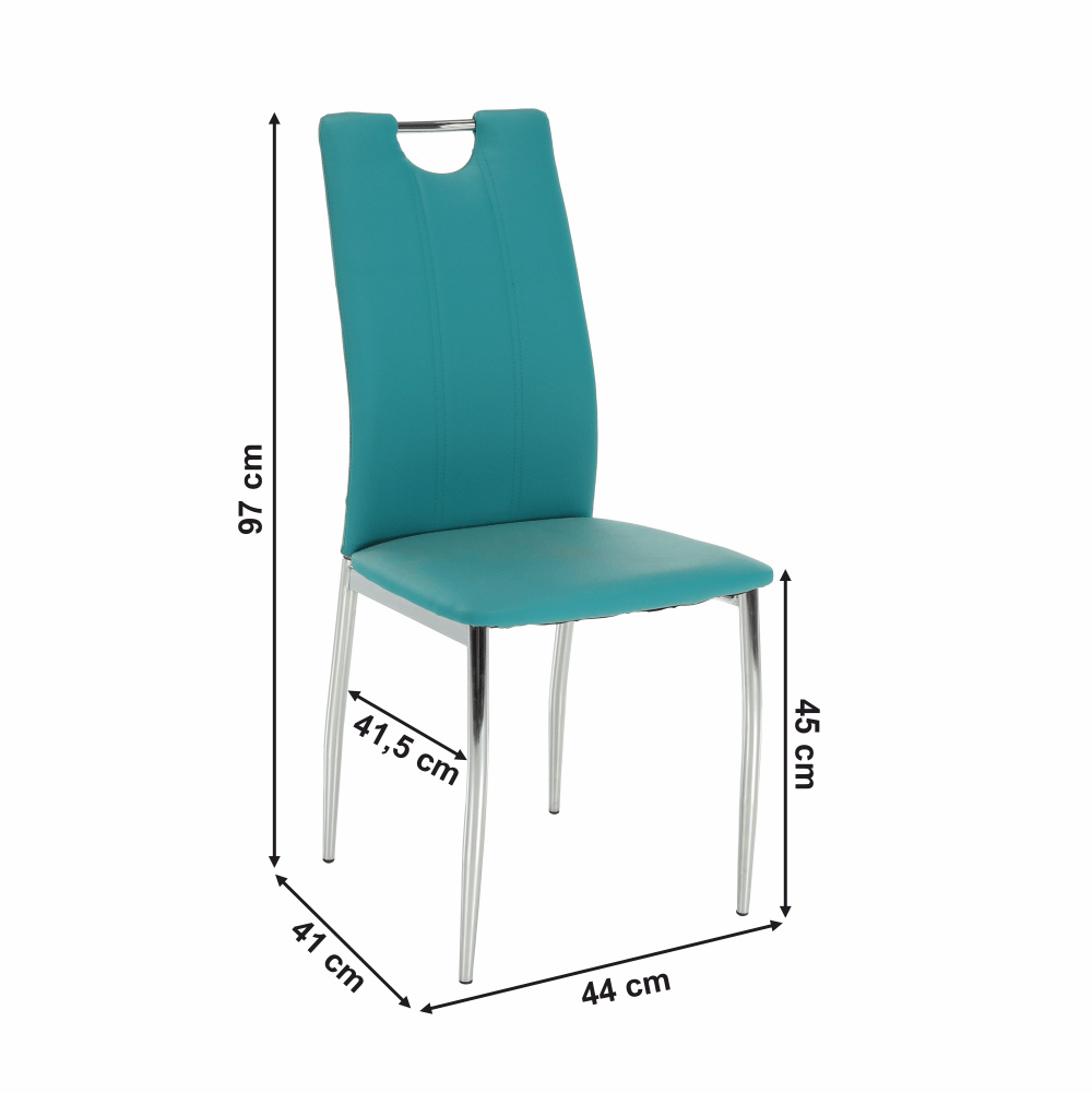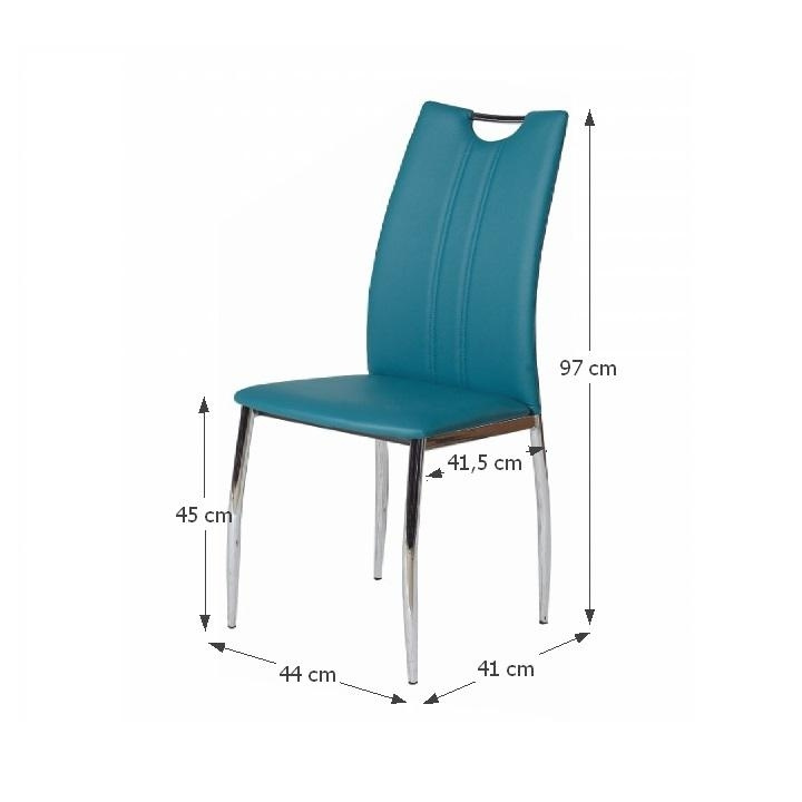 Jídelní židle, Materiál: chrom + ekokůže, Oděruodolnost ekokůže podle testu Martindale: 100 000 oděrek Barevné provedení petrolejová Rozměry ŠxHxV: 44x41x97 cm, Výška sezení: 45,5 cm Nosnost: 110 kg