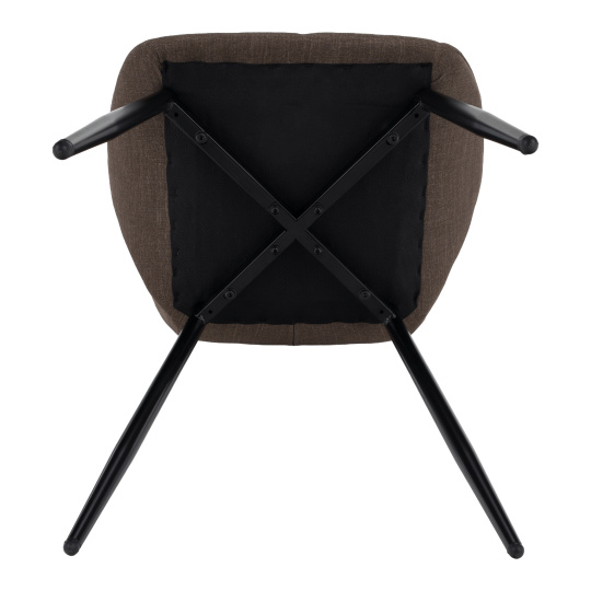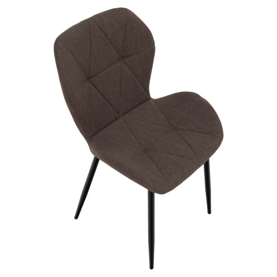 Materiál: látka/kov Oděruodolnost textilie podle testu Martindale: 70 000 oděrů Barva: hnědá/černá Rozměry (ŠxHxV): 51x52,5x84 cm Výška sedu: 45 cm Hloubka sedu: 39 cm Šířka sedu: 50 cm Výška zádové opěrky: 42,5 cm Šířka zádové opěrky: 48 cm Nosnost: 110 kg Dekorativní šití Dodáváno v demontu