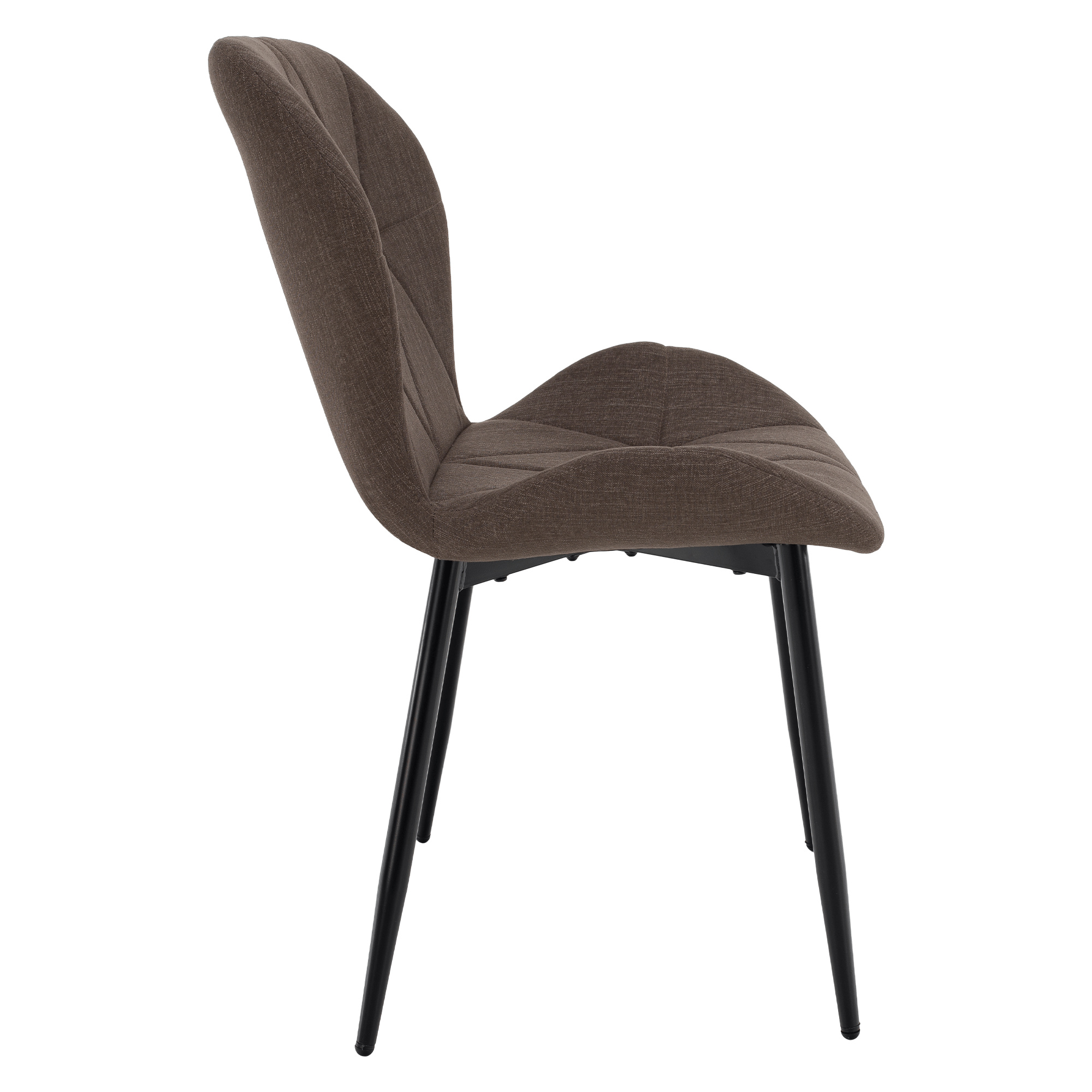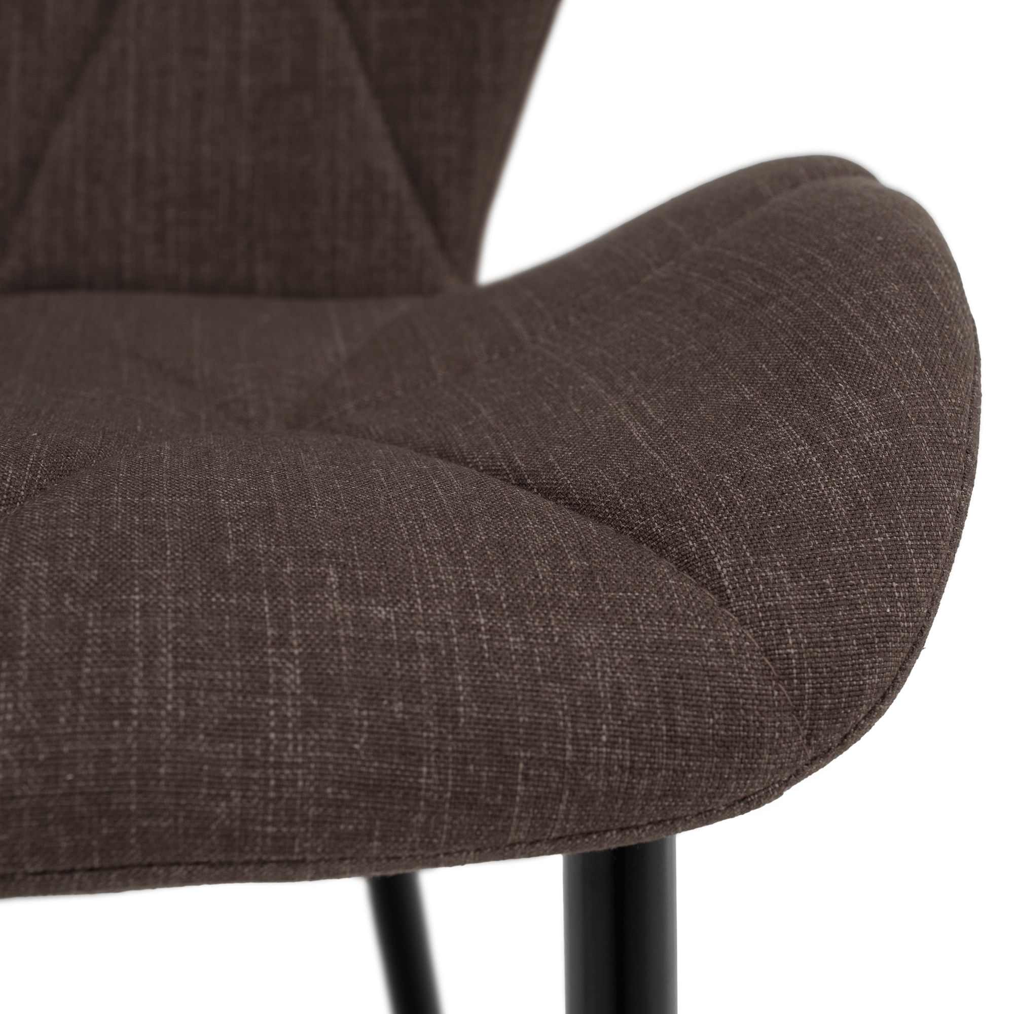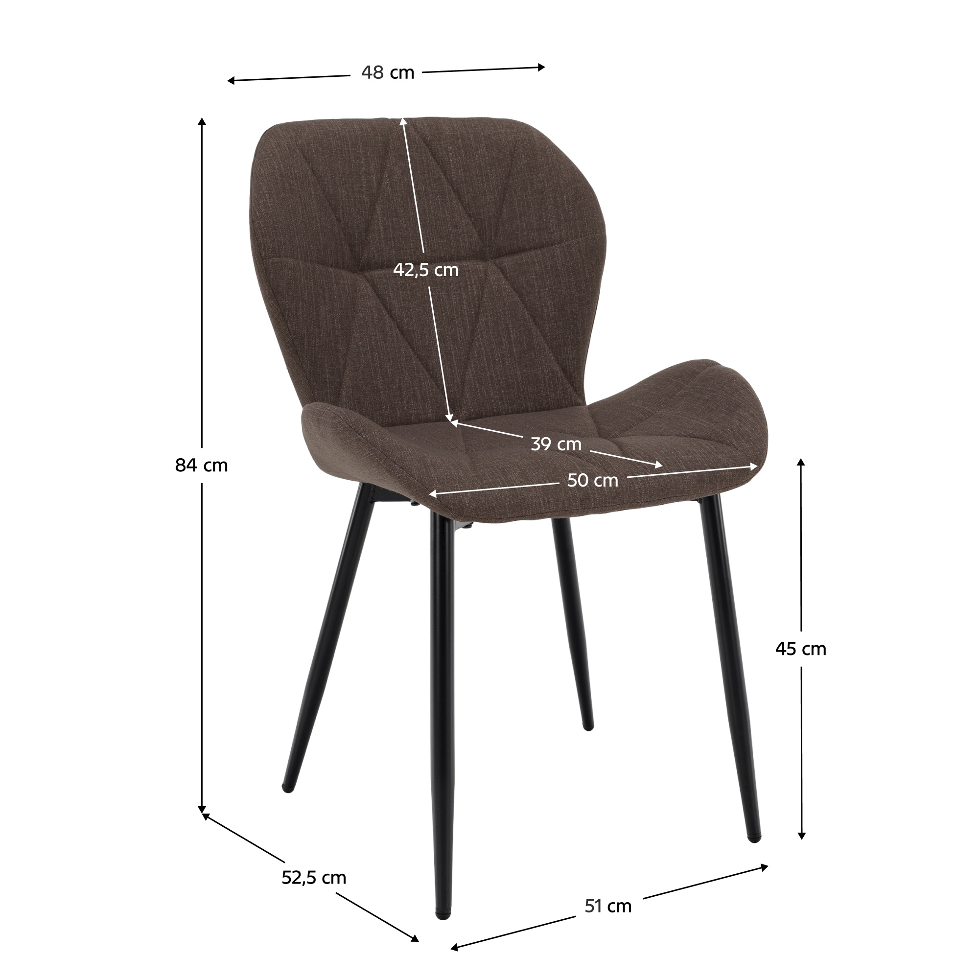 Materiál: látka/kov Oděruodolnost textilie podle testu Martindale: 70 000 oděrů Barva: hnědá/černá Rozměry (ŠxHxV): 51x52,5x84 cm Výška sedu: 45 cm Hloubka sedu: 39 cm Šířka sedu: 50 cm Výška zádové opěrky: 42,5 cm Šířka zádové opěrky: 48 cm Nosnost: 110 kg Dekorativní šití Dodáváno v demontu
