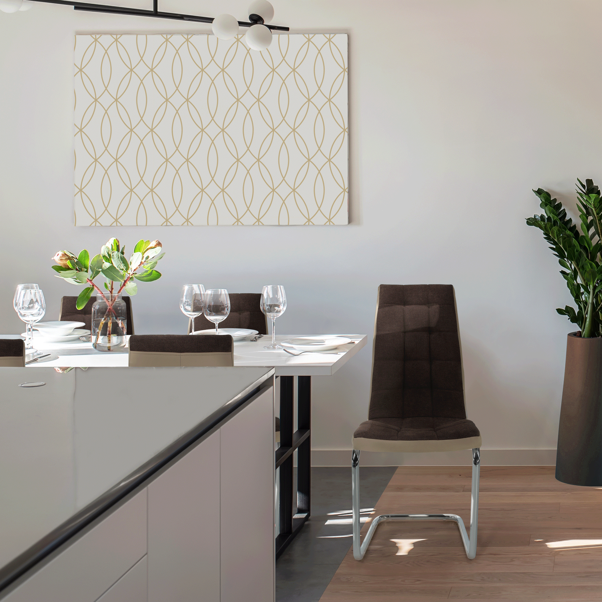 Jídelní židle SALOMA NEW. Materiál: látka / ekokůže / chrom Oděruodolnost textilie podle testu Martindale: 50 000/100 000 oděrek Barva: hnědá / béžová. Rozměry (ŠxHxV): 42x56,5x105 cm Výška sedu: 45 cm Nosnost: 110 kg