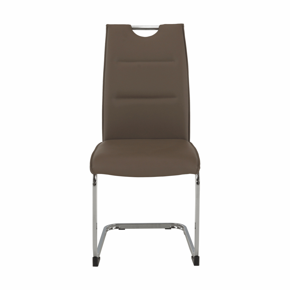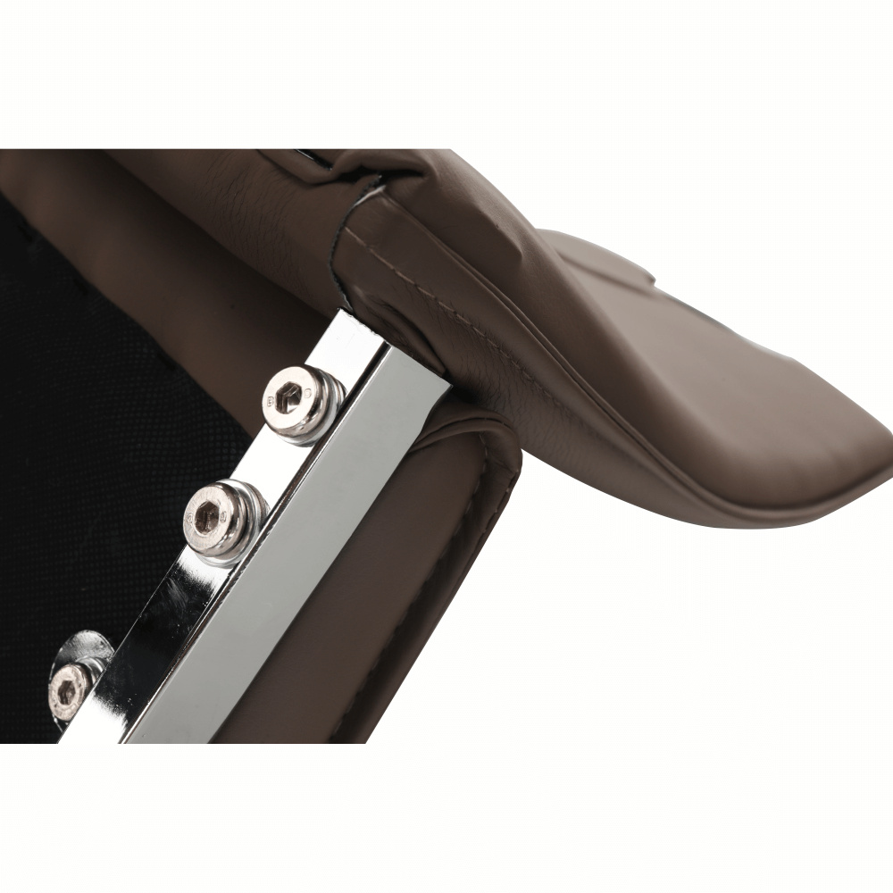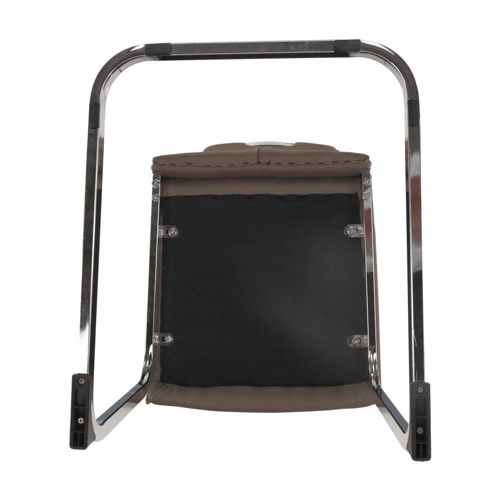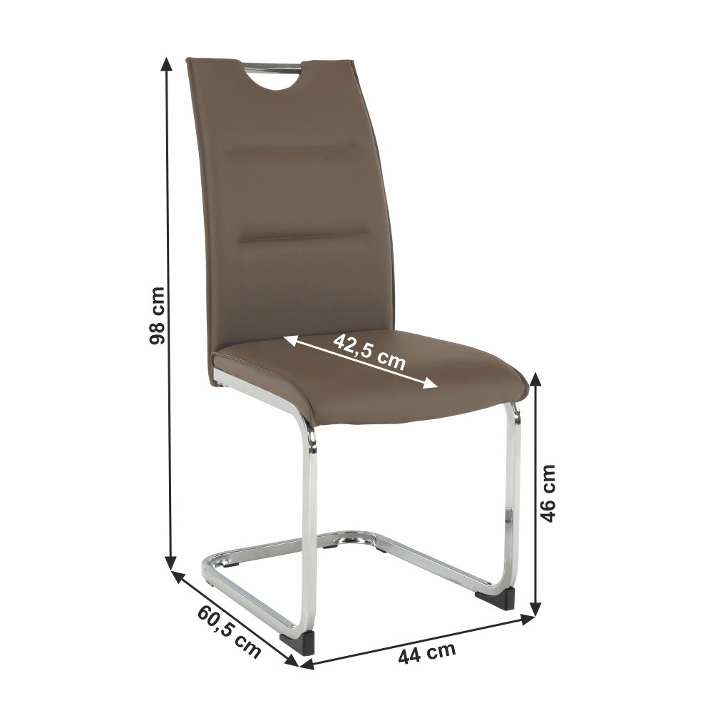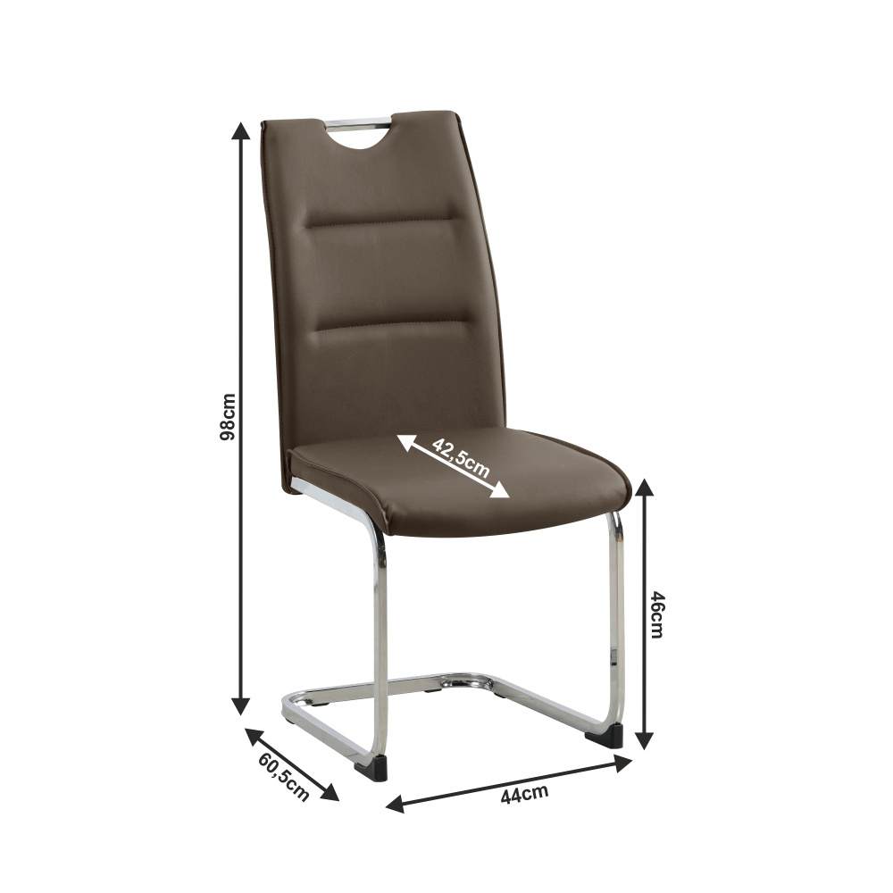 Materiál: ekokůže / chrom Oděruodolnost textilie podle testu Martindale: 100 000 oděrek Barva: hnědá / chrom Rozměry (ŠxHxV): 44x60,5x98 cm Výška sedu: 46 cm Hloubka sedu: 42,5 cm Nosnost: 90 kg Dodávané v demontu.