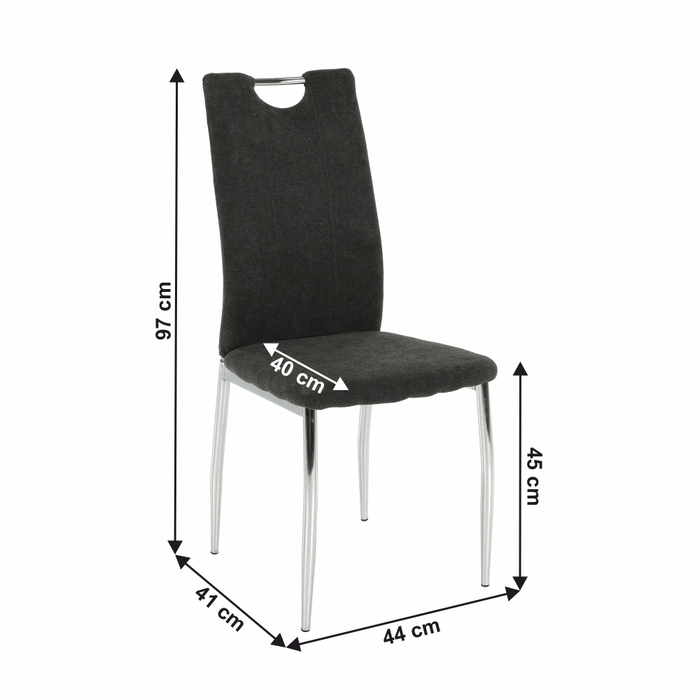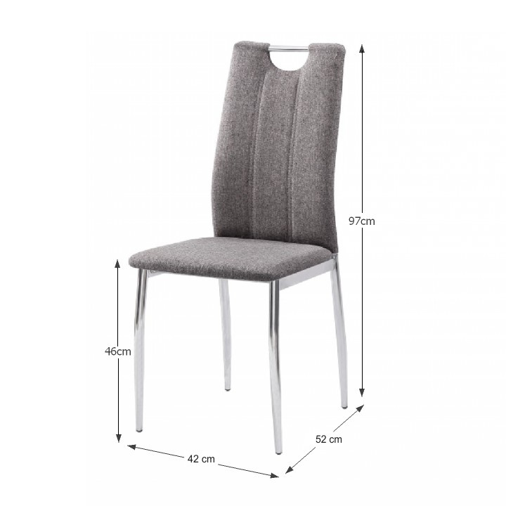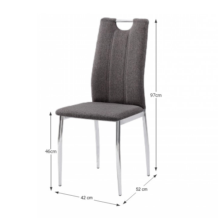 Jídelní židle OLIVA NEW v barevném provedení hnědošedé látky s chromovanými nohami. Oděruodolnost textilie podle testu Martindale: 50 000 oděrek Rozměry (ŠxHxV): 42x52x97 cm Výška sedu: 46 cm Nosnost: 110 kg Dodávané v demontu.