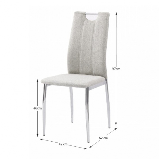 Jídelní židle OLIVA NEW v barevném provedení látky béžový melír s chromovanými nohami. Oděruodolnost textilie podle testu Martindale: 50 000 oděrek Rozměry (ŠxHxV): 42x52x97 cm Výška sedu: 46 cm Nosnost: 110 kg Dodávané v demontu.