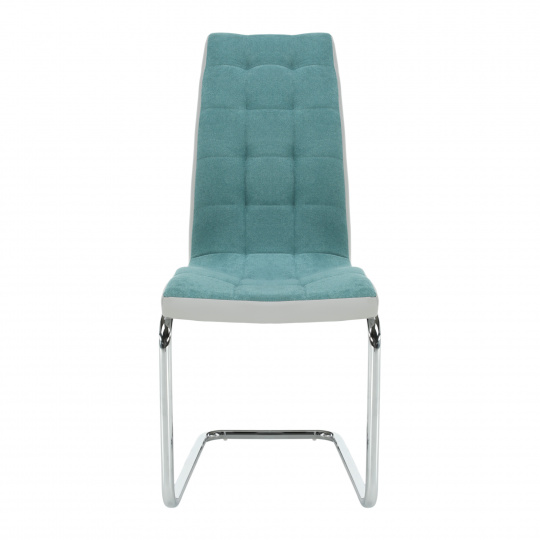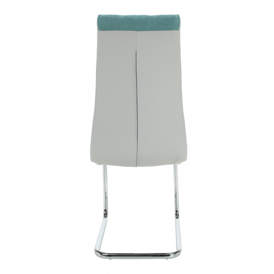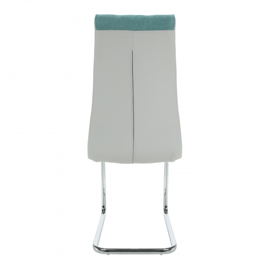 Jídelní židle SALOMA NEW. Materiál: látka / ekokůže / chrom Oděruodolnost textilie podle testu Martindale: 50 000/100 000 oděrek Barva: mentolová/šedá Rozměry (ŠxHxV): 42x56,5x105 cm Výška sedu: 45 cm Nosnost: 110 kg