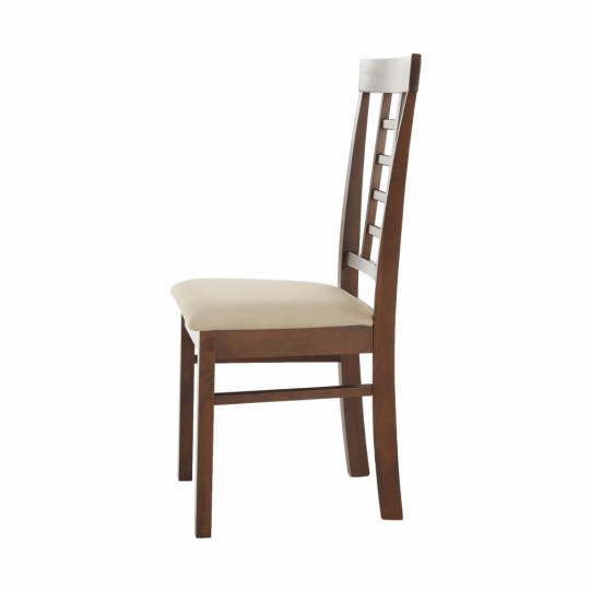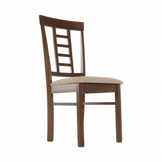 Jídelní židle OLEG NEW Materiál: dřevo / látka Oděruodolnost textilie podle testu Martindale: 80 000 oděre Barva: ořech / béžová Rozměry (ŠxHxV): 45x48x95 cm Nosnost: 100 kg Dodávané v demontu.