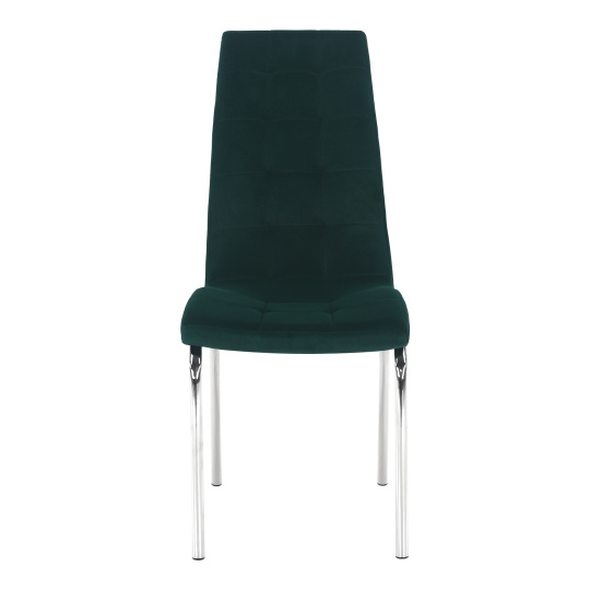 Jídelní židle GERDA NEW Materiál: látka / chrom Oděruodolnost textilie podle testu Martindale: 85 000 oděrek Barevné provedení: smaragdová Rozměry (ŠxHxV): 42x58x103cm Hloubka sezení: 43 cm Výška sezení: 45 cm Šířka sezení: 42 cm Nosnost: 110 kg Dodávané v demontu.