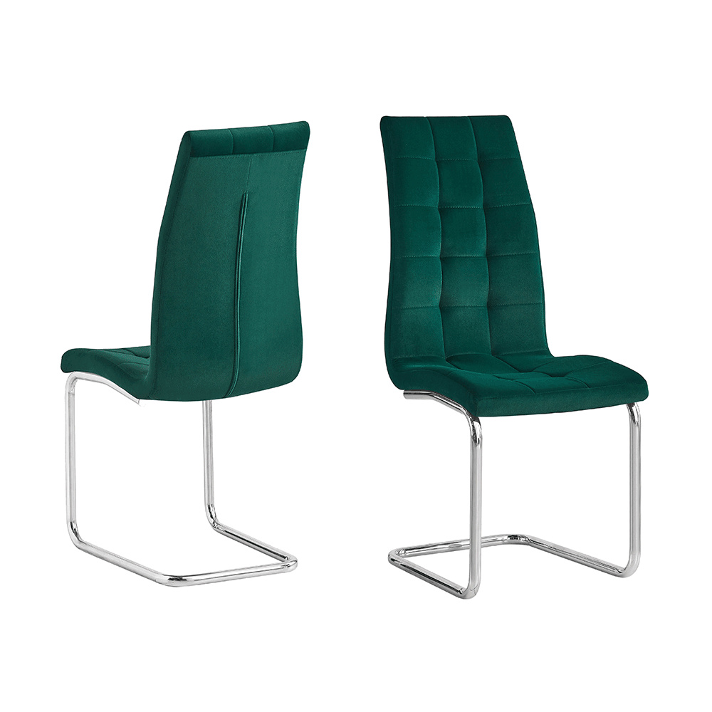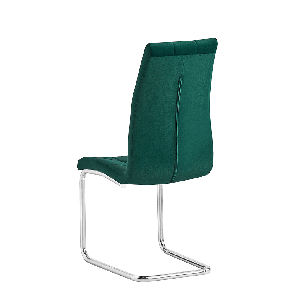 Jídelní židle Materiál: velvet látka v barevném provedení smaragdová/ chrom Rozměry (ŠxHxV): 42x56,5x105 cm Oděruodolnost textilie podle testu Martindale: 85 000 oděrek Hloubka sezení: 43 cm Výška sezení: 45 cm Šířka sezení: 42 cm Nosnost: 110 kg