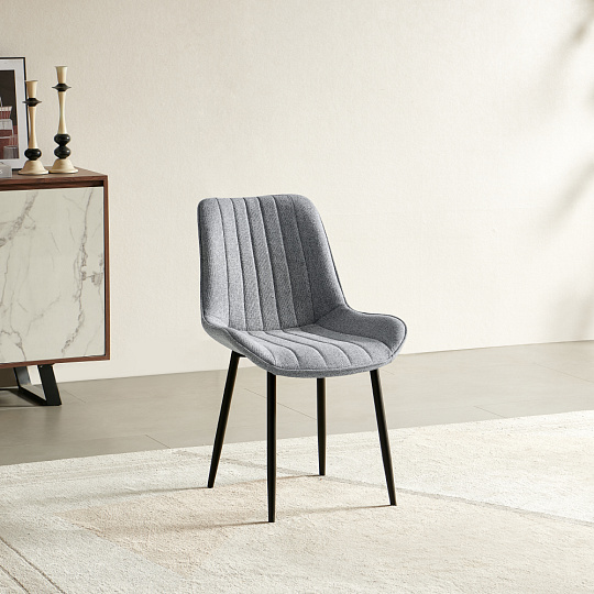 Materiál: látka Lumos 08/kov Oděruodolnost textilie podle testu Martindale: 80 000 oděrů Barva: světle šedá/černá Rozměry (ŠxHxV): 54x62x84 cm Výška sedu: 40 cm Hloubka sedu: 45 cm Šířka sedu: 50 cm Šířka zádové opěrky: 45 cm Výška zádové opěrky: 44 cm Nosnost: 100 kg Hmotnost: 4,5 kg Jídelní Dekorativní prošití Moderní design Dodáváno v demontu