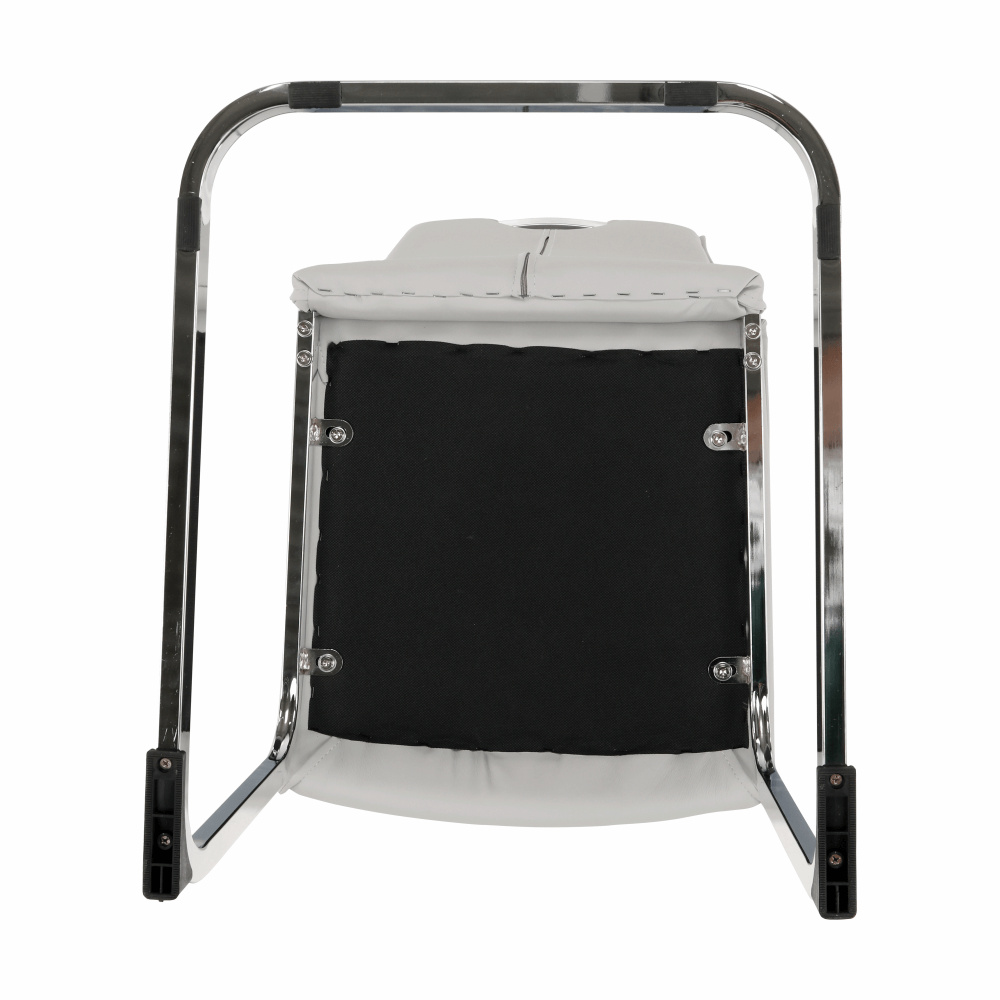 Materiál: ekokůže / chrom Oděruodolnost textilie podle testu Martindale: 100 000 oděrek Barva: světlešedá / chrom Rozměry (ŠxHxV): 44x60,5x98 cm Výška sedu: 46 cm Hloubka sedu: 42,5 cm Nosnost: 90 kg Dodávané v demontu.
