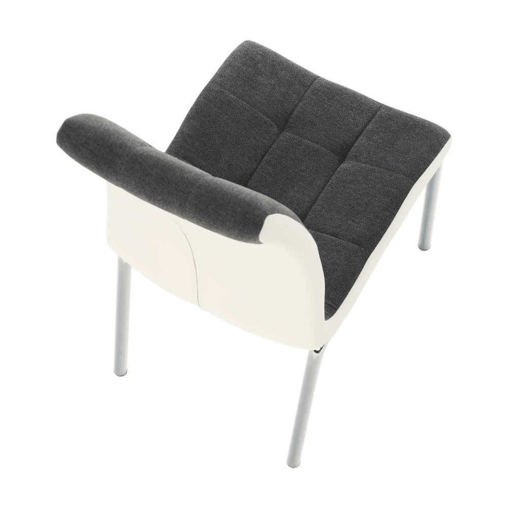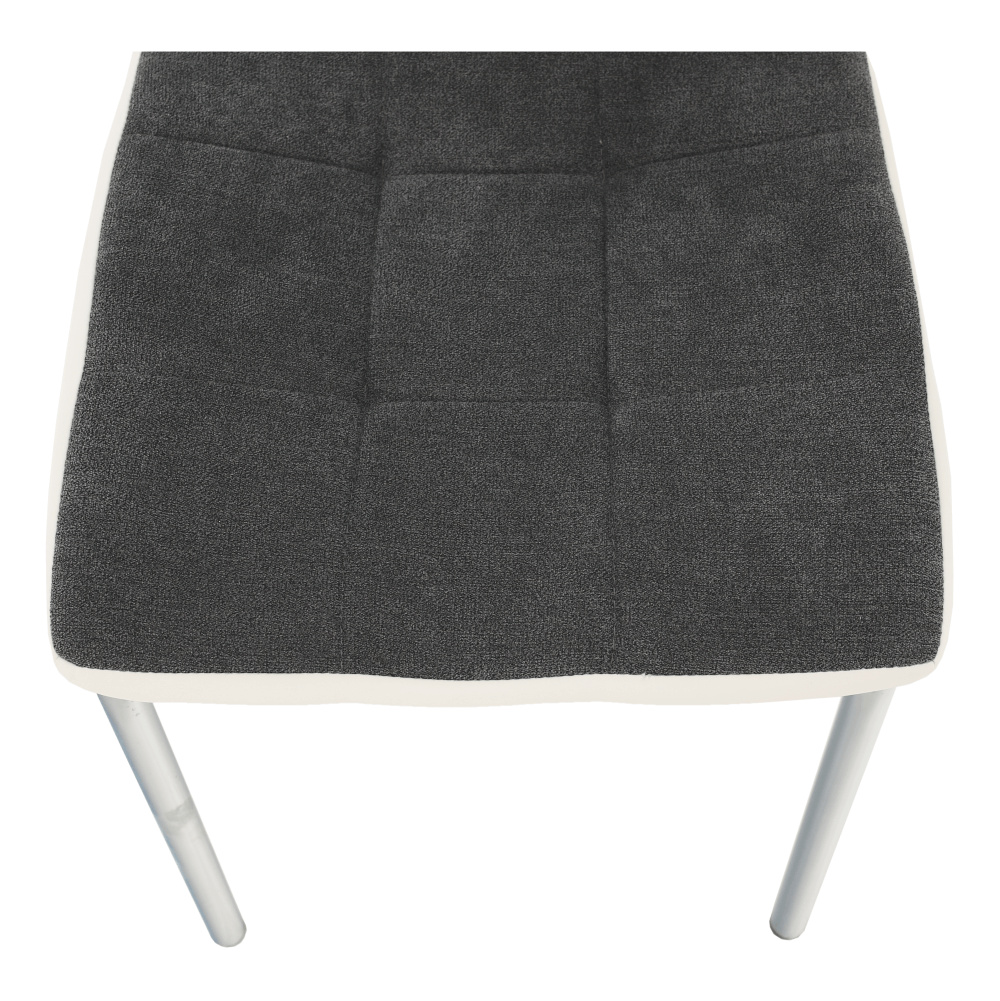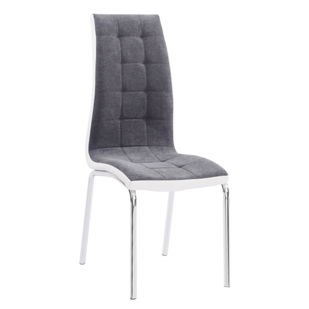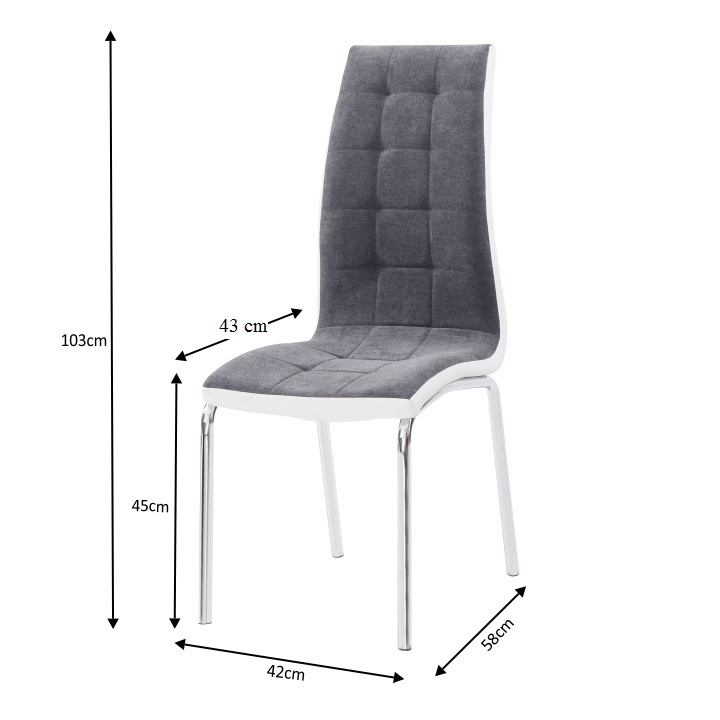 Jídelní židle GERDA NEW Materiál: látka / ekokůže / chrom Oděruodolnost textilie podle testu Martindale: 50 000/100 000 oděrek Barevné provedení: tmavě šedá / bílá Rozměry (ŠxHxV): 42x58x103 cm Výška sedu: 45 cm Nosnost: 110 kg Dodávané v demontu.