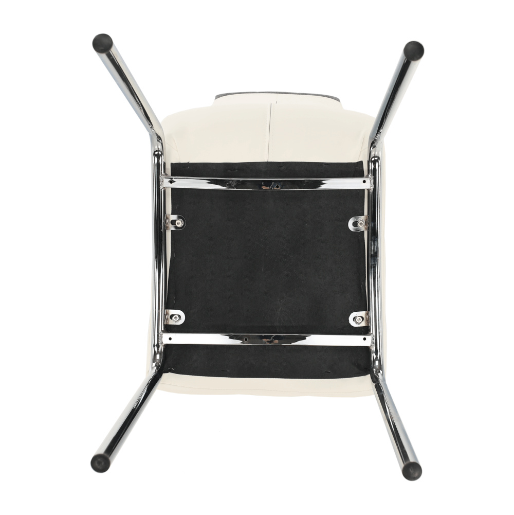 Jídelní židle BARNA NEW. Materiál: ekokůže / chrom Oděruodolnost textilie podle testu Martindale: 100 000 oděrek Barva: bílá Rozměry (ŠxHxV): 43x46x100 cm Hmotnost: 6,5 kg Nosnost: 90 kg Dodávané v demontu. Hmotnost: 8.25kg