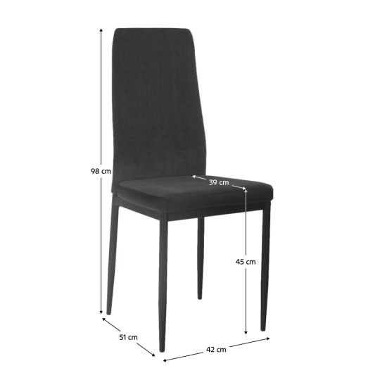 Barva: tmavě šedá / černá Materiál: látka/ekokůže/kov Oděruodolnost textilie podle testu Martindale: 90 000/100 000 oděrek Rozměry (ŠxHxV): 42x51x98 cm Výška sedu: 45 cm Hloubka sedu: 39 cm Nosnost: 90 kg Dodávané v demontu.