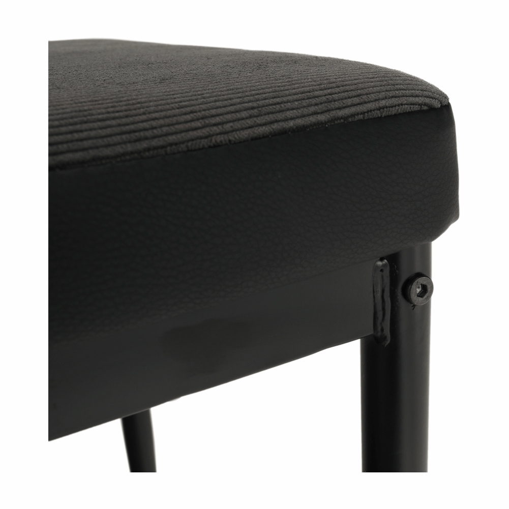 Barva: tmavě šedá / černá Materiál: látka/ekokůže/kov Oděruodolnost textilie podle testu Martindale: 90 000/100 000 oděrek Rozměry (ŠxHxV): 42x51x98 cm Výška sedu: 45 cm Hloubka sedu: 39 cm Nosnost: 90 kg Dodávané v demontu.