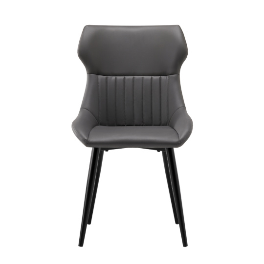 Materiál: ekokůže/kov Oděruodolnost textilie podle testu Martindale: 100 000 oděrů Barva: tmavě šedá/černá Rozměry (ŠxHxV): 50x58x85,5 cm Výška sedu: 43 cm Hloubka sedu: 41 cm Šířka sedu: 49 cm Výška zádové opěrky: 45 cm Šířka zádové opěrky: 46,5 cm Moderní Nosnost: 100 kg Atraktivní vzhled Kvalitní prošití Dodáváno v demontu
