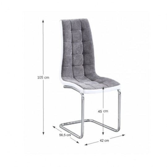 Jídelní židle SALOMA NEW Materiál: látka / ekokůže / chrom v barevném provedení tmavě šedá a bílá., Oděruodolnost textilie podle testu Martindale: 50 000/100 000 oděrek Rozměry (ŠxHxV): 42x56,5x105 cm Nosnost: 110 kg