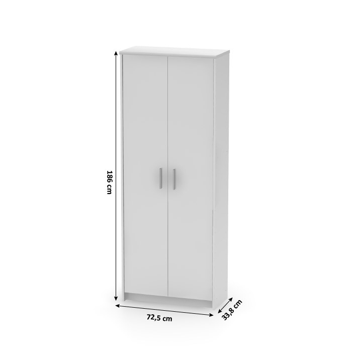 Kancelářský regál se skříňkou na zámek a otevřeným úložným prostorem JOHAN 2 NEW 10 Barevné provedení: bílá Materiál: DTD lamiovaná Rozměry (ŠxHxV): 72,5x33,8x186 cm Skříňka s dvířky na zámek Zámek je na dveřích Uvnitř skříňky dvě police Rozměry skříňky (ŠxHxV): 67,6x33,8x106 cm Otevřený úložný prostor jedna police Tloušťka vnitřních poli