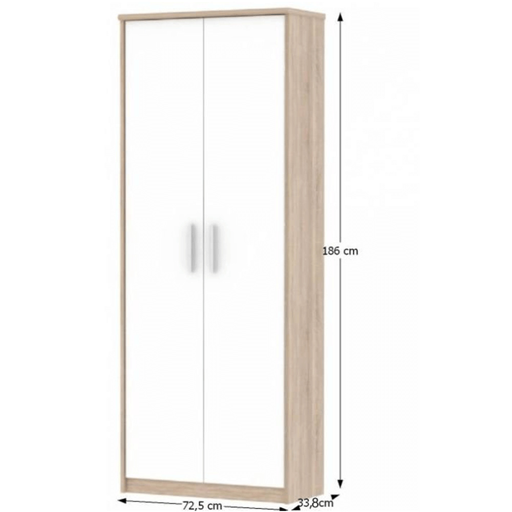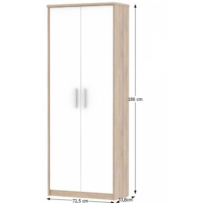 Skříň Maurus NEW MA50 Materiál: laminovaná DTD Barevné provedení: dub sonoma / bílá Rozměry (ŠxHxV): 181,2x33,5x181,2 cm Tloušťka materiálu: 16 mm Dodávané v demontu. Hmotnost: 86.5kg