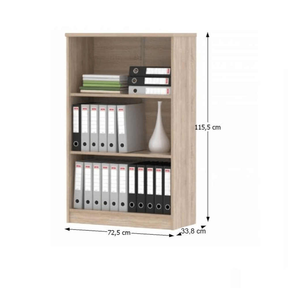 Kancelářský regál JOHAN 2 NEW 03 se dvěma policemi Barevné provedení: kraft dunkel/bílá Materiál: DTD lamiovaná Rozměry (ŠxHxV): 72,5x33,8x115 cm Tloušťka materiálu: 16/22 mm slovenský výrobek ABS hrany Dodávané v demontu Hmotnost: 21.5kg