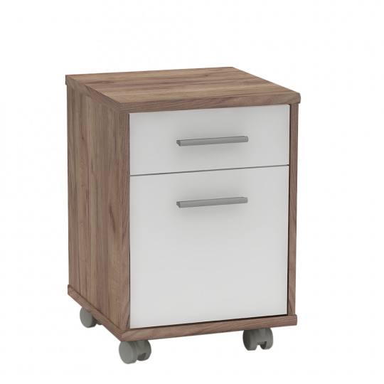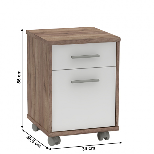 Kancelářská sestava JOHAN 2 NEW Materiál: DTD laminovaná Barva: kraft dunkel/bílá Rozměry psacího stolu (ŠxHxV): 150x67,5x73,5 cm Rozměry psacího stolku s vysouvací částí (ŠxHxV): 100x67,5x73,5 cm Rozměry rohového stolku (ŠxHxV): 67,5x67,5x73,5 cm Rozměry kontejneru (ŠxHxV): 39x40,5x55 cm Rozměry z nízkého regálu (ŠxHxV): 72,5x33,8x115,5 cm Rozměry z vysokého regálu (ŠxHxV): 72,5x33,8x186 cm Rozměry skříně (ŠxHxV): 72,5x33,8x186 cm Tloušťka materiálu: 16/22 mm ABS hrany Slovenský výrobek Dodávané v demontu